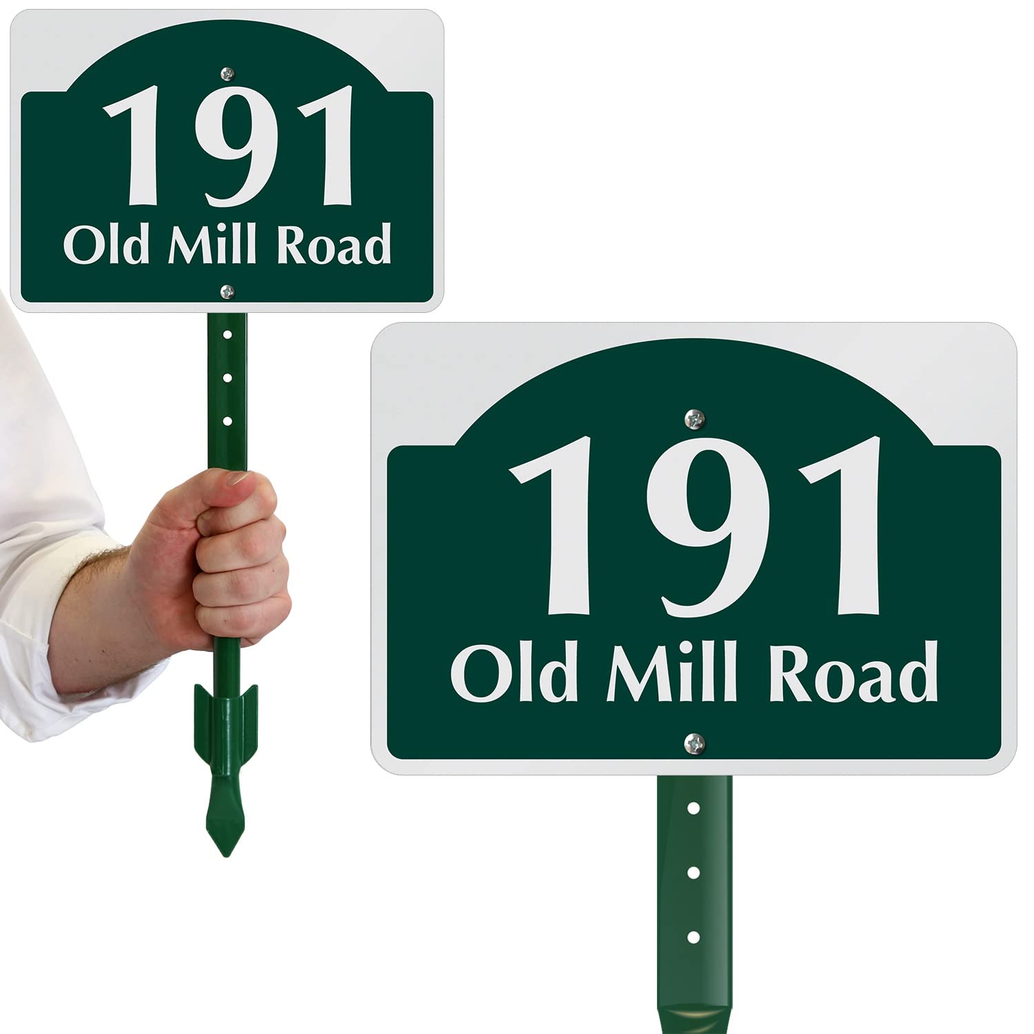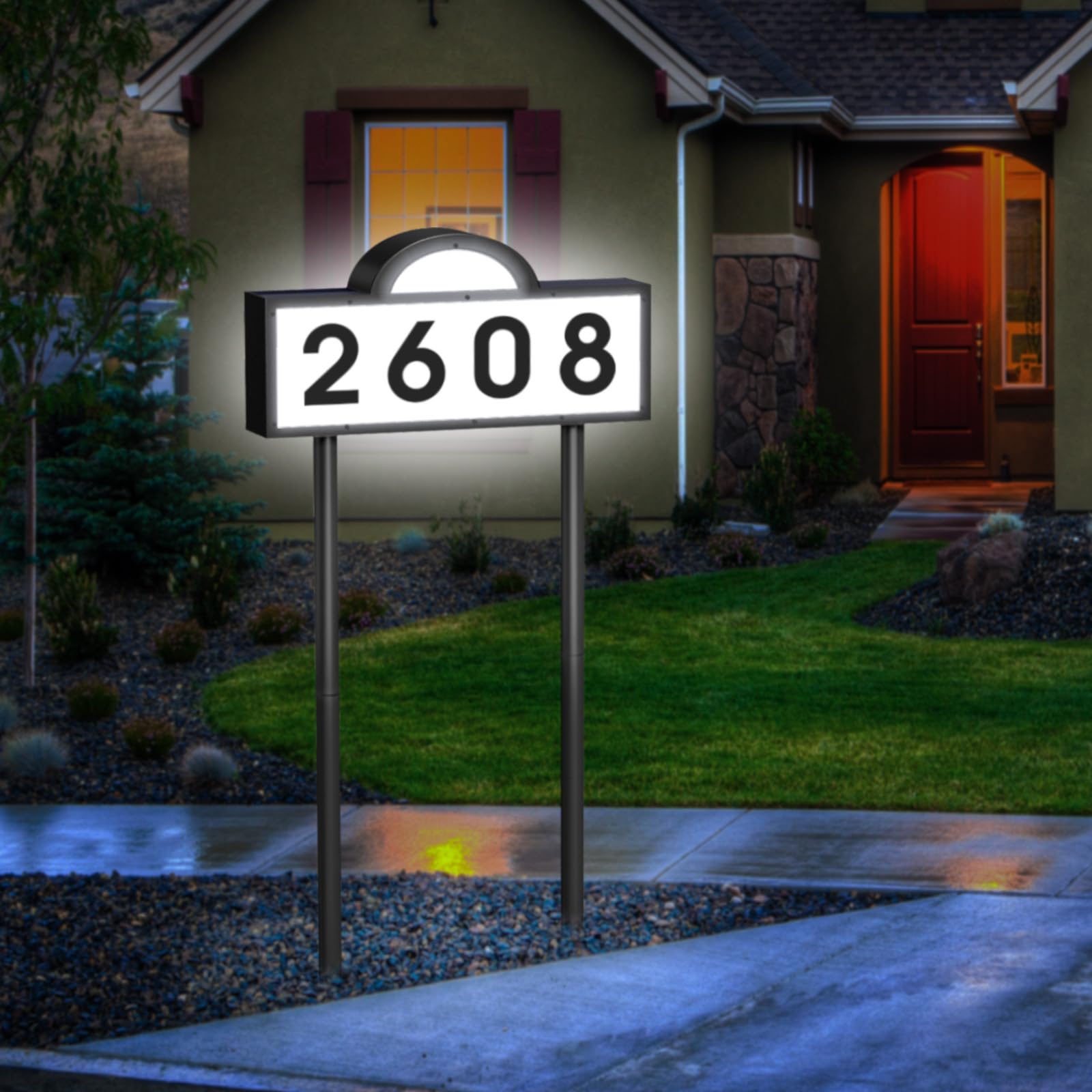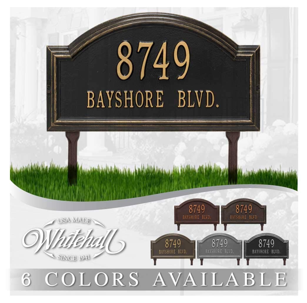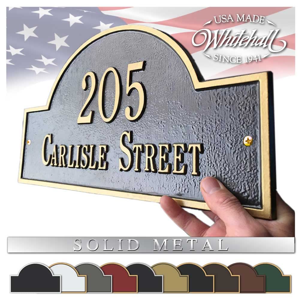 40 Color Options, Double Sided Hanging Princeton Arch Two Line Address Sign Plaque, Powder Coated Aluminum (Holds up to 5 Address Digits on Line 1) made by Address Number Store