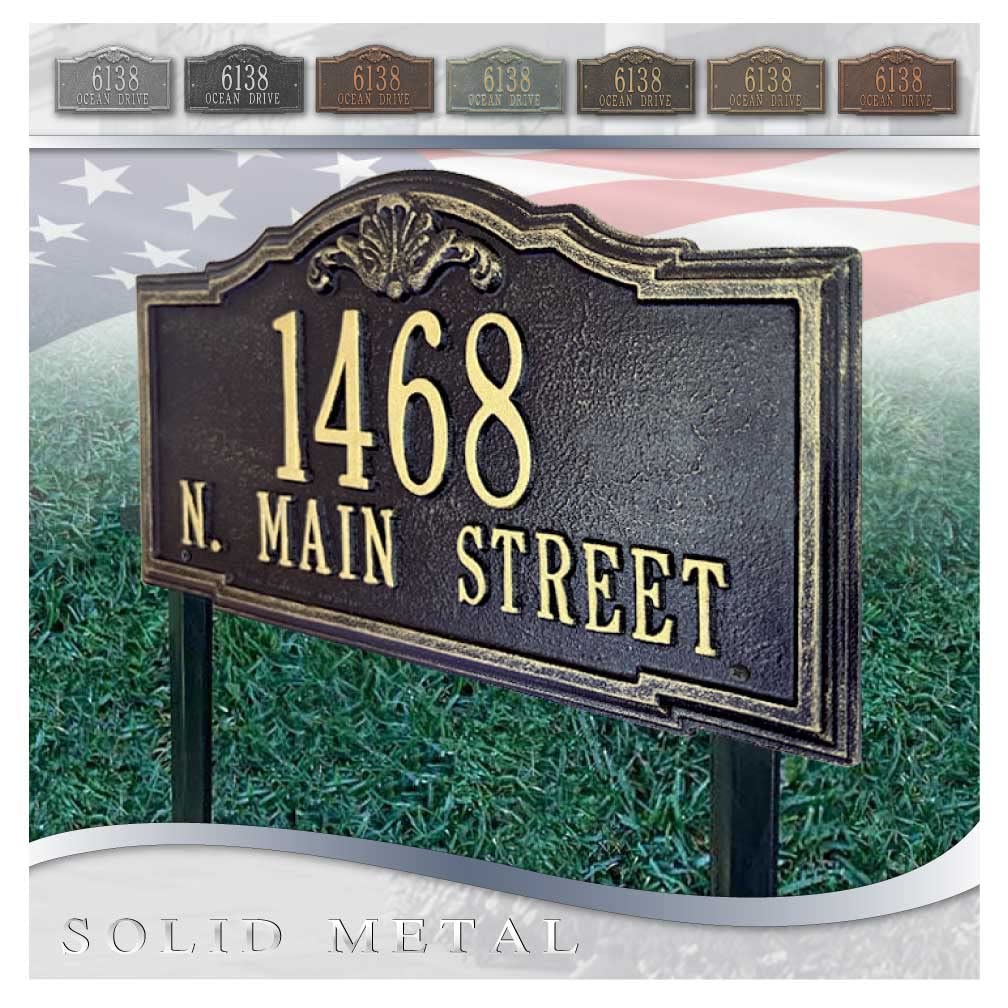 This high quality cast aluminum address plaque by The Address Number Store adds that extra bit of curb appeal that helps your home pop. Each sign is created from a unique sand mold. Heavy durable recycled aluminum is used to insure that your plaque will stand the test of time. After the casting and finishing process, a high quality rust proof and weather proof powder coated paint is applied so your plaque will look great for years to come. Mounting hardware (eye bolt set) is provided.