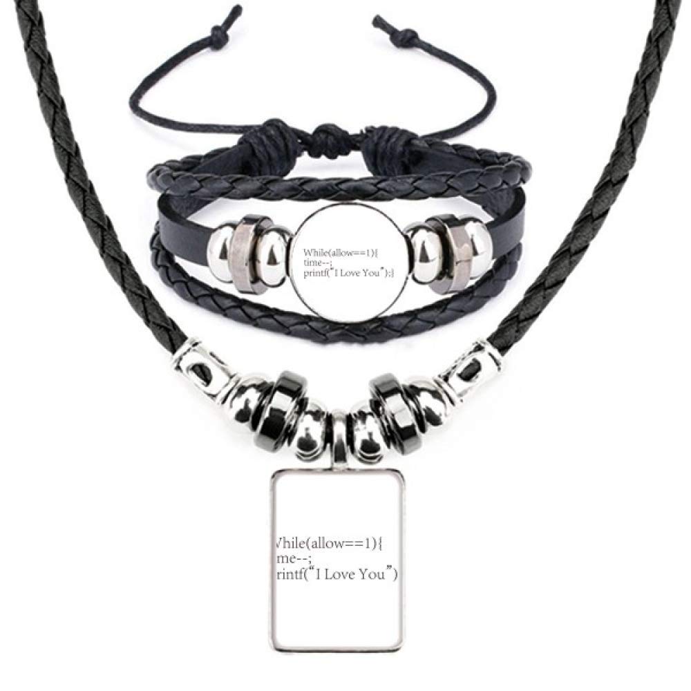 Programmer Program Statement HTML Leather Necklace Bracelet Jewelry Set