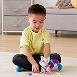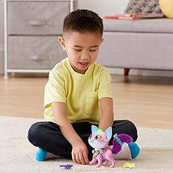 Touch Ava’s magical necklace to choose a color; tap her hair, eyes and ears to decorate them with that color Ava has more than 100 fun, magical responses; interact with her to explore lucky colors and hear about her mood, feelings and more Wag Ava’s tail by pushing her leg; she’ll respond with lights and playful phrases Includes a brush for her tail, plus two hair clips to share Intended for ages 4+ years; requires 2 AAA batteries; batteries included for demo purposes only; new batteries recommended for regular use