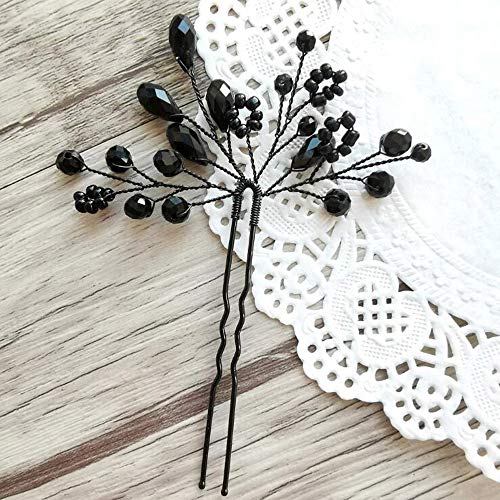 Kercisbeauty Wedding Hair Pins Crystal Hair Accessories for Women Girls Bridal Hair Clips Brides Bridesmaid Hair Dress 2pcs (Black)