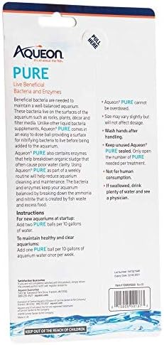 Bio-filtration supplement balls. Beneficial bacteria are needed to maintain a well-balanced aquarium. These bacteria live on the surfaces of the aquarium such as rocks, plants, decor and filter media. Unlike other liquid bacteria supplements, Aqueon PURE comes in an easy to dose ball providing a surface for nitrifying bacteria tto live before being added to the aquarium. Aqueon PURE also contains enzymes that help breakdown organic sludge that often cause poor water clarity. Using Aqueon PURE as part of a weekly routine will help reduce aquarium cleaning and maintenance. The bacteria and enzymes keep your aquarium balanced by breaking down the ammonia and nitrite that is created by fish waste and excess food.