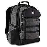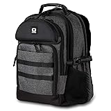 Top-loading laptop compartment fits laptops up to 17” Comfortable and breathable air mesh dual strap and back panel system Crush-resistant Tech Vault pocket to protects valuables Luggage handle pass-through for attaching backpack to carry-on luggage Dimensions: 14”L x 8”W x 18”H