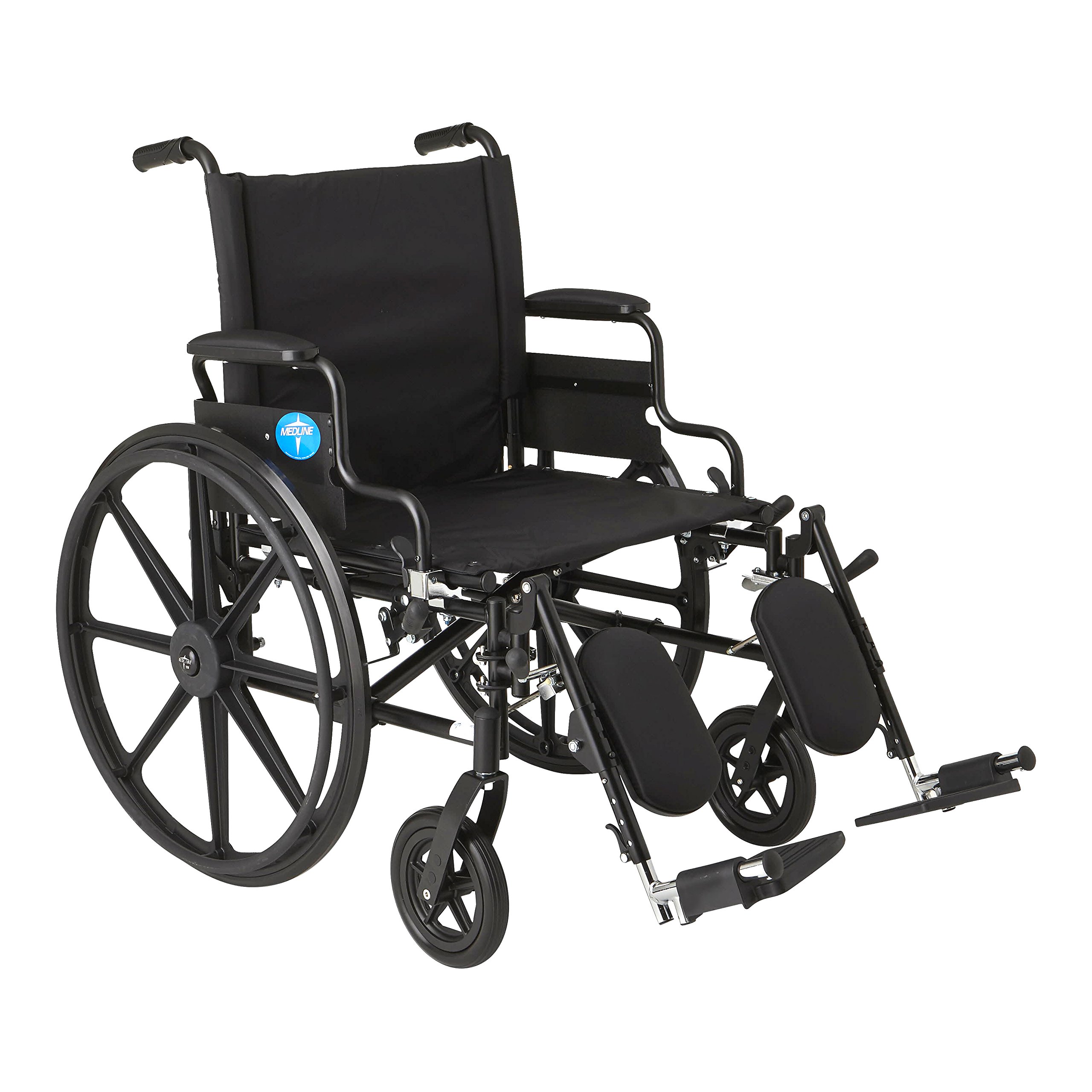 Medline Comfortable Folding Wheelchair with Swing-Back, Desk-Length Arms and Elevating Footrests, 20”W x 16”D Seat