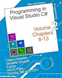 - * This book is obsolete - Visual Studio 2019 - You can continue to download this version* Search Amazon for this variation of the title: " War and Peace - C# Programming 1 Vol. " (now Visual Studio 2022) Original Description: This is the second of a five (now six) volume set. The topics are of interest for beginning students but these chapters quickly jump into the weeds with technical details that all programmers need to know. 475 pages Chapter 8 Class Libraries This takes all of the utilities from chapters 1-7 and rolls them into a class-library that can be dropped into any program. This is important: You will never have to write a substring command or a parsing routine again. While building this library, you will learn how to pass values to-and-from class libraries, which lays the groundwork for larger and more complicated programs. Chapter 9 Variable Scope is a short but important chapter that describes the rise and fall of variables as they come into being and then die. Chapter 10 - Forms Chapter 10 covers everything about Windows forms, every useful button and event. Chapter 11 - Secondary Forms This is the right way to call secondary forms with the best techniques. Chapter 12 - ASCII How to open, read, and process ASCII files. How to rifle through a .CSV or Tab file. All error-trapping and other best practices from real-world programs and real-world needs. Chapter 13 - Parsing CSV and TAB files Learn the exact steps to parse CSV and Tab files -- even those files with embedded commas. The result of these chapters is a new utility library that automates parsing by using a one-word command. I am particularly excited by these chapters! I use these routines in all of my programs. These are my go-to functions that have saved me untold hours of work. With zero effort, I can drop-in a simple command that does amazingly complicated things. What is extra neat about these modules is they are yours – you are free to use in any program, and most importantly, you will have the skills to enhance and extend them for your own needs. This series is being distributed through Amazon Kindle as a multi volume set in order to make printing manageable. All four volumes are 2,000-pages long, with 1300 illustrations. The Utility functions in Volume 1 are required in all future chapters. Volume 1: 1 Introduction to the Editor 2 Introduction to Loops 3 Conditional Branching 4 Strings 5 Numbers and Dates 6 Utility Functions 7 Advanced Utility Functions Volume 3: 8 Class Libraries 9 Variable Scope 10 Form Controls and Events 11 Calling Multiple Forms 12 ASCII Files 13 Parsing Tab and CSV Files Volume 3: 14 INI Files 15 XML and App.config Files 16 Windows Registry 17 Reading Excel, ComboBoxes and SQL 18 External Programs (Shell) 19 Wait, Delays, Pauses 20 Printing 21 Formatting Volume 4: 22 Arrays 23 File Manipulation 24 Console Applications Volume 5: 25 SQL Databases 26 SQL Record Edits 27 SQL Data Grids 28 SQL Data Grid Cell Editing Volume 6: Stand-alone Student and Instructor Project Book Project 1 - Star Trek Computer Simulation - fun Project 2 - Luhn Visa Card Check Digit - Interesting Project 3 - DirectoryPulse - Hard drive explorations Thank you for purchasing. I hope you enjoy it as much as I have had writing it. Comments and suggestions are welcomed.