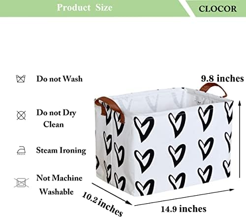 CLOCOR Heart Rectangular Basket, Cute Pattern Storage Bin, Collapsible Waterproof Storage Box with Handles for Kids, Gift Baskets, Shelf Basket (Black Hearts)