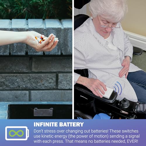 - ✔️ Self-Powered and Battery-Free Each button is powered by kinetic energy—no batteries or maintenance required. Pressing the switch sends a reliable signal to the included receiver for instant control.