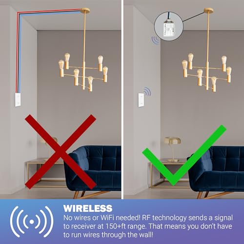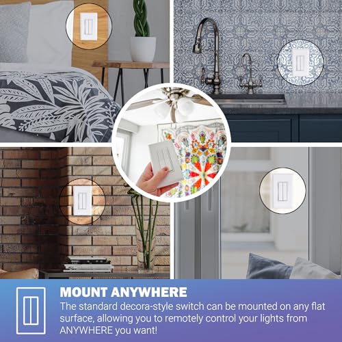 - ✔️ Easy DIY Installation – Mount Anywhere Mount over existing boxes or directly to walls, glass, tile, or wood. The receiver installs at the fixture and the switch fits standard Decora wall plates for a clean look.