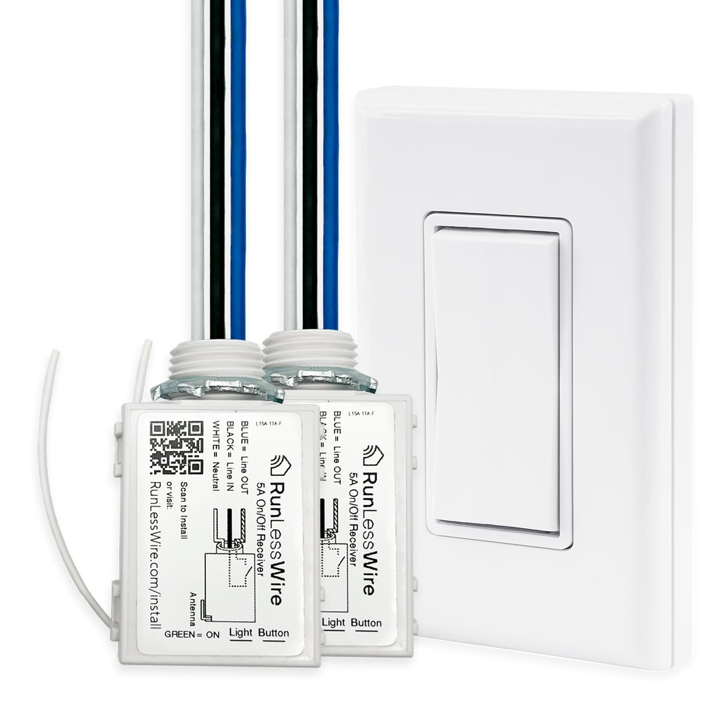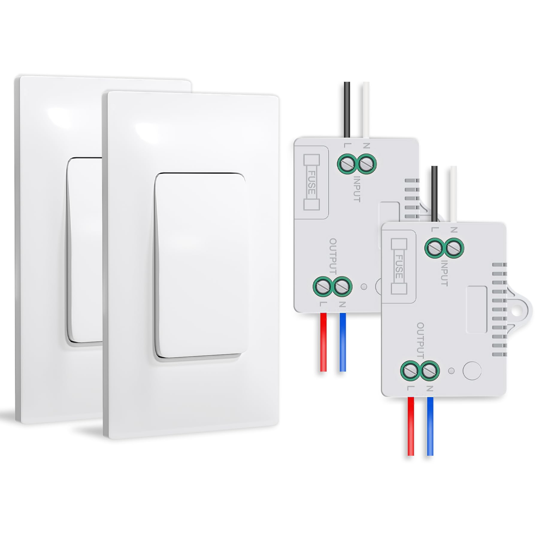 - ✔️ Wireless Double Rocker Light Switch – No Wiring Needed Add or move a switch anywhere without running wires. This wireless switch kit includes a double rocker that controls two lights or fixtures independently using radio frequency (RF) technology.