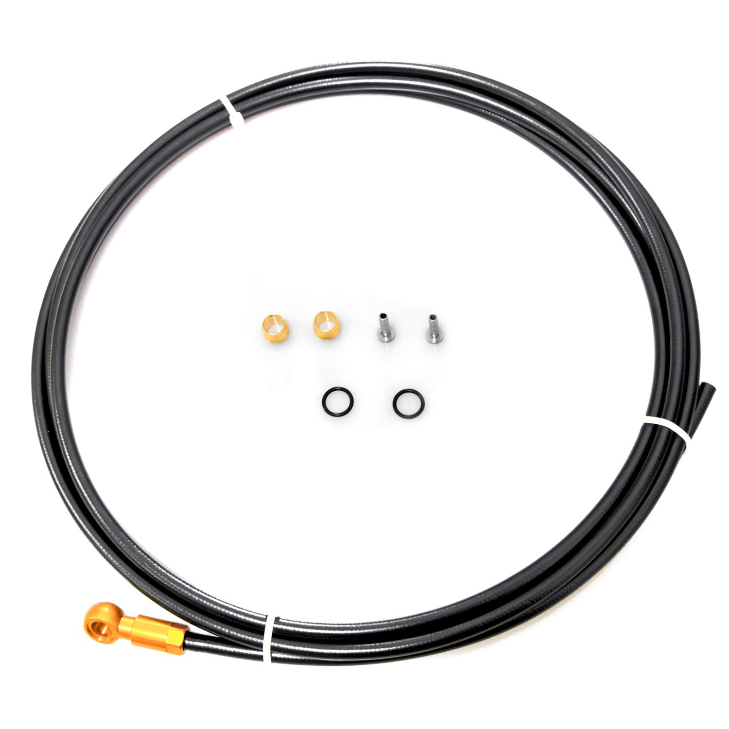 - Brake hose is made of inner liner tube + braided yarn + nylon outer layer, burst coefficient above 10000PSI and tubing ruler of 2.0*5.0mm.