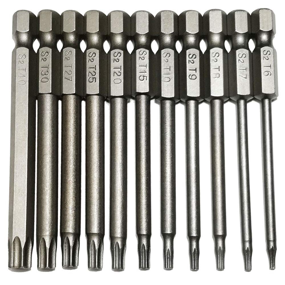 - ✔【S2 High Quality Steel】Made of S2 high quality shock-resisting tool steel, a hard and abrasion-resistant alloy metal. Torx head bits surface for steel material color,from inside to outside are the same.
