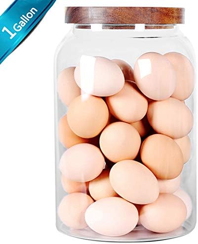 SAIOOL Egg Jar,kitchen canister, 1 Gallon Large Glass Food Storage Jars with Airtight Lid, Clear