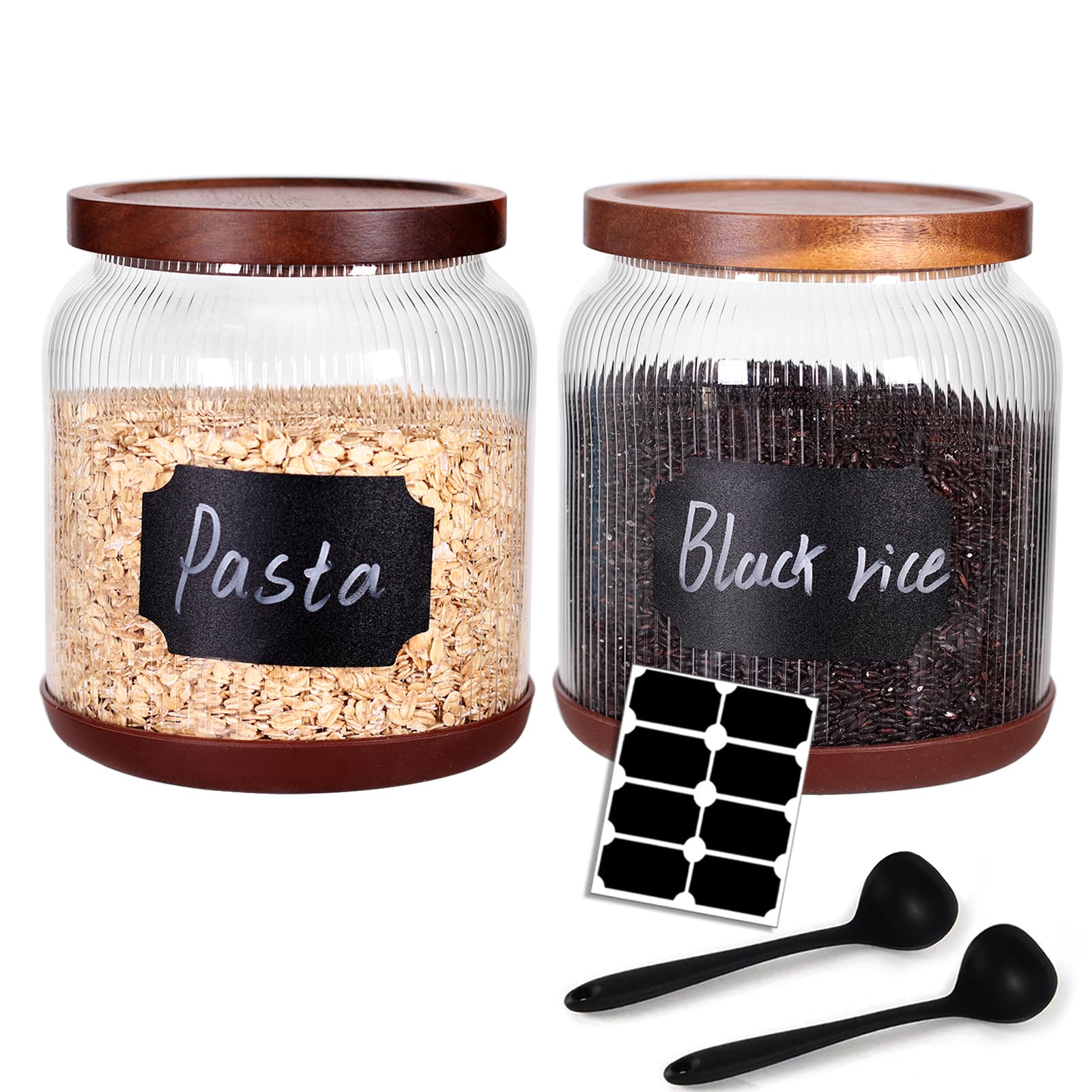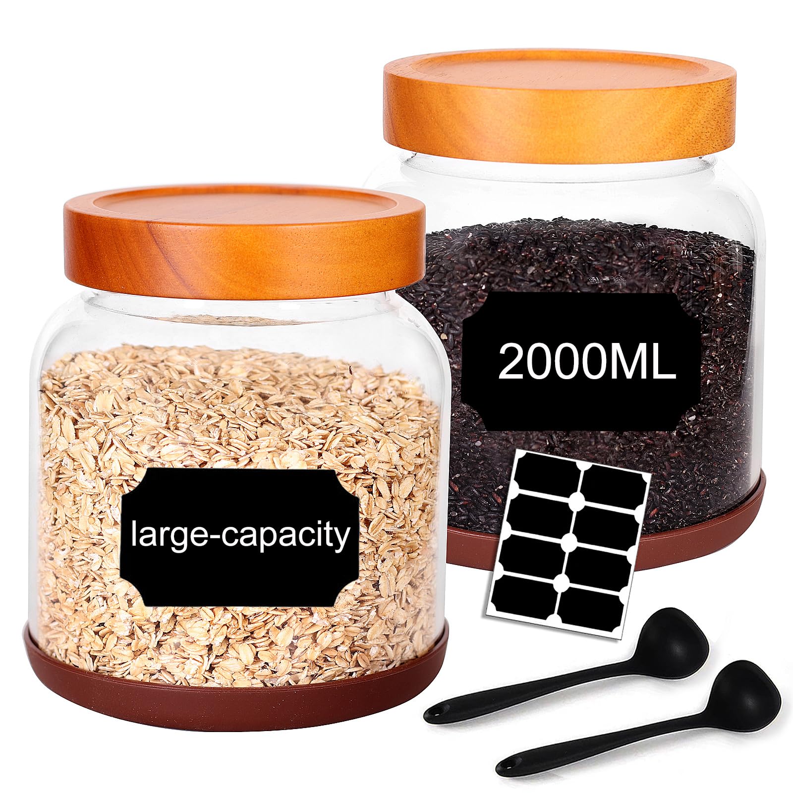 - LARGER:Kitchen containers glass are a perfect way to organize your pantry.The large opening makes for easy scooping and filling
