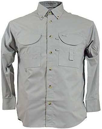 Best wash and wear shirt in the market. 4.2 ounce, 52/48 cotton/poly, stain & wrinkle resistant lightweight performance fabric. Functional fishing shirt with two extra-large chest cargo pockets with extra loops to carry all of your fishing accessories. Tailored button down collar, resists curling & remains flat with every wearing. Velcro mesh-lined vented cape allows air to circulate freely and enhances freedom of movement. Velcro closure for easy embroidery. Wood-tone buttons. Full Cut. Sizes from XS-7XL & Talls