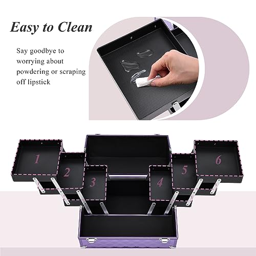 Frenessa Makeup Train Case 12 Inch Portable Cosmetic Case - 6 Tier Professional Makeup Storage Box Organiser Box Make Up Carrier with Lockable Keys Travel Case for Women and Girls - Purple