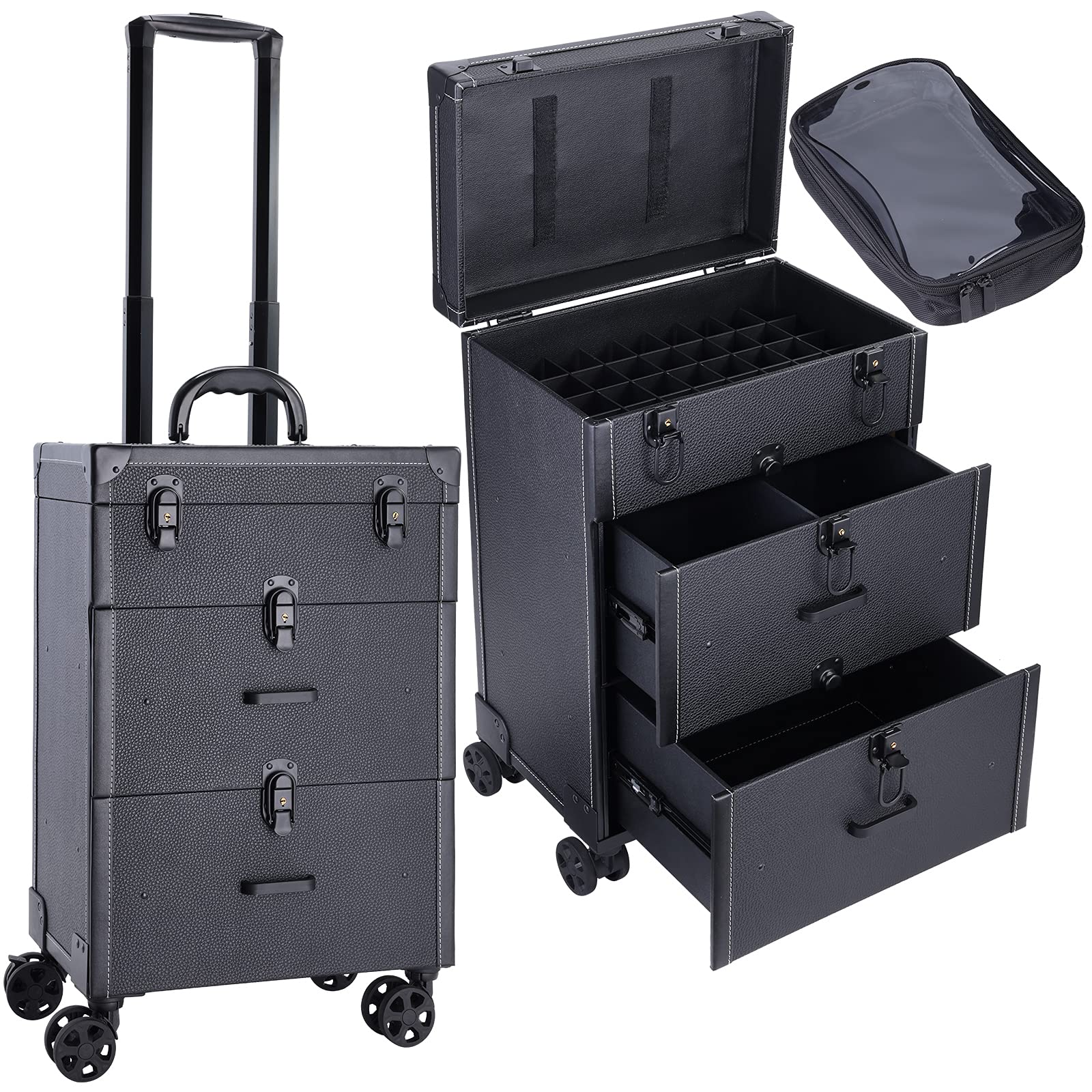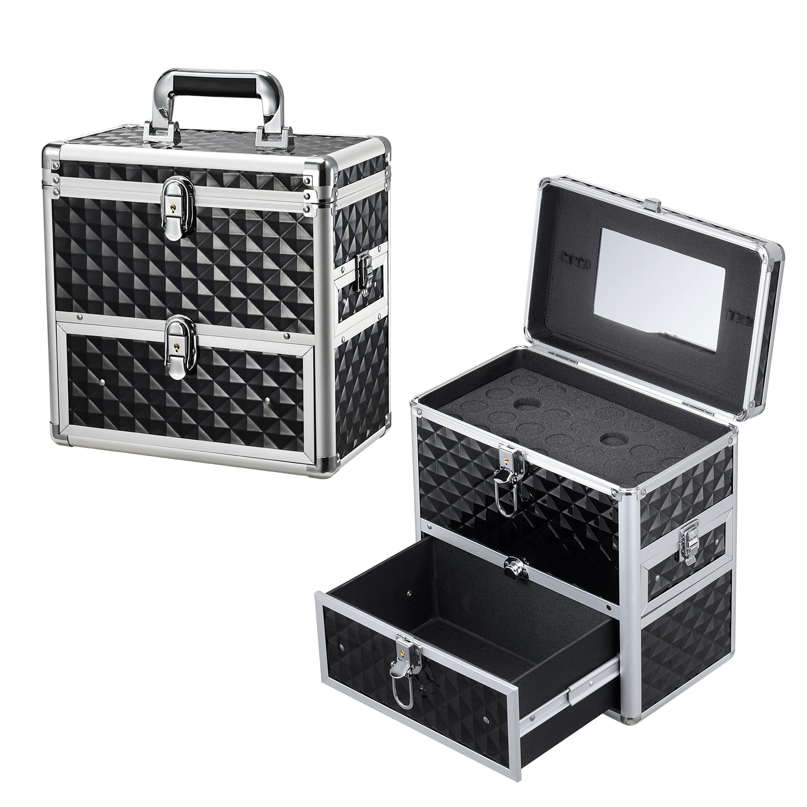 - Spacious & Practical Cosmetic Case: Storage is flexible to fit in various sizes of cosmetic products such as your toiletries, nail polish, essential oils, jewelrys, paint brush, crafting tools. There is a large bottom space for the palette, nail dryer, and even travel-size bottles.