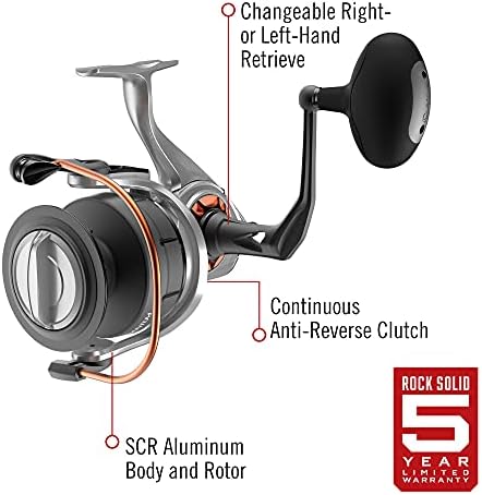 - SUPERIOR DESIGN: This spinning reel is constructed with an SCR aluminum body and rotor, 4.2:1 gear ratio and 40 IPT for a smooth and consistent retrieve. The reel features the convenience of a changeable right- or left-hand retrieve. The ceramic carbon drag system can hold up to 50-pounds of max drag giving you the ultimate in design and strength to reel in your prize catch
