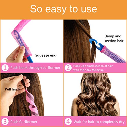 - Fácil de usar: lava el cabello y sécalo a medias con champú y toalla antes de rizar, luego pasa el gancho de estilo a través del rulo y engancha una pequeña sección de cabello cerca de tu cuero cabelludo, tira a través del rollo de cabello, quita el gancho, continúa los pasos hasta que todas las secciones de cabello estén rizadas, espera a que tu cabello se seque por completo y retira cada rulo para un cabello rizado voluminoso