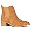 Smooth faux leather bootie with a chunky low heel and that trademark Chelsea boot elastic side. Tapered round toe in solid neutrals pairs well with leggings and casual dresses.