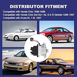 Distributor Compatible with Honda Civic 1996-1998; Honda Civic Del Sol 1.6L S & SI Models 1996-1997; Compatible with Acura EL 1.6L 1997.Please use enter your vehicle in your Amazon Garage above to see if this part is compatible with your vehicle. Replacement for Part Numbe:TD80 TD80U TD-98U 30100-P2E-A01 TD98U TD-80U 30100P2EA01 DST17420. Include:The complete assembly of the ignition distributor including the ignition module, cap and rotor eliminates the need to use old parts or purchase these parts.Seals are ready to install. Replace Distributor:If your car has difficulty starting, poor ignition, high-voltage leakage, and start the engine at the same time, there will be knocking, jitter, poor acceleration and abnormal smoke exhaust. Please check and replace your distributor in time. Precision Proces:Precision machined bodies assure correct fit and accurate mount locations.Precision machined ground shafts assure high speed accuracy and prevent bearing failures.