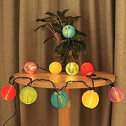 Colorful Lantern String Lights - The total length of this haning lantern light is 9.84FT with 10 LEDa.The color of the indoor string light is composed of blue, yellow, green, red and purple. They are very beautiful even during the day Connectable & Plug In - This decorative string lights requires simple assembly, plug and play. The maximum rated power of its wires is 216W and up to 25 lights of the same type can be connected to form 212 feet long Waterproof Lantern Lights - These outdoor string lights are made of nylon which is 100% waterproof! Which perfect for your wedding garden party, outdoor celebration or camping Perfect Decoration Lighting - These decorative string lights give off a soft, warm glow that adds a peaceful and inviting atmosphere to your home or garden. Perfect for wrapping around furniture, bed frames, windows, stair railings, shelves, mantels, terraces, balconies, or decks Help & Service - Need simple assembly! The bedroom string lights include 2 spare mini bulbs and 1 fuse, If you have any questions about these Chinese lantern lights, please contact us by email or on the Q&A page
