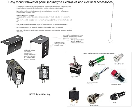Patented Bracket for Mounting panel mounted electronics on any surface , Ideal for panel mount push button Circuit Breakers , Toggle Switches or Push Button switches , Led warning Lights, Fuse Holders , panel mount connectors and much more . made with high quality marine grade 5052 anodize aluminum for great whether resistance. Accessory Mount Hole Size 15/32" inches or 12mm , Can fit most standard size Toggle switches, push button thermal Breakers and many more panel mounted accessories. Patent: US 11,268,652 B2