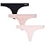 Jessica Simpson Women's Underwear Breathable Thongs, No Show Ladies Panties, Soft Microfiber Stretch Lace, Tanga, 3 Pack
