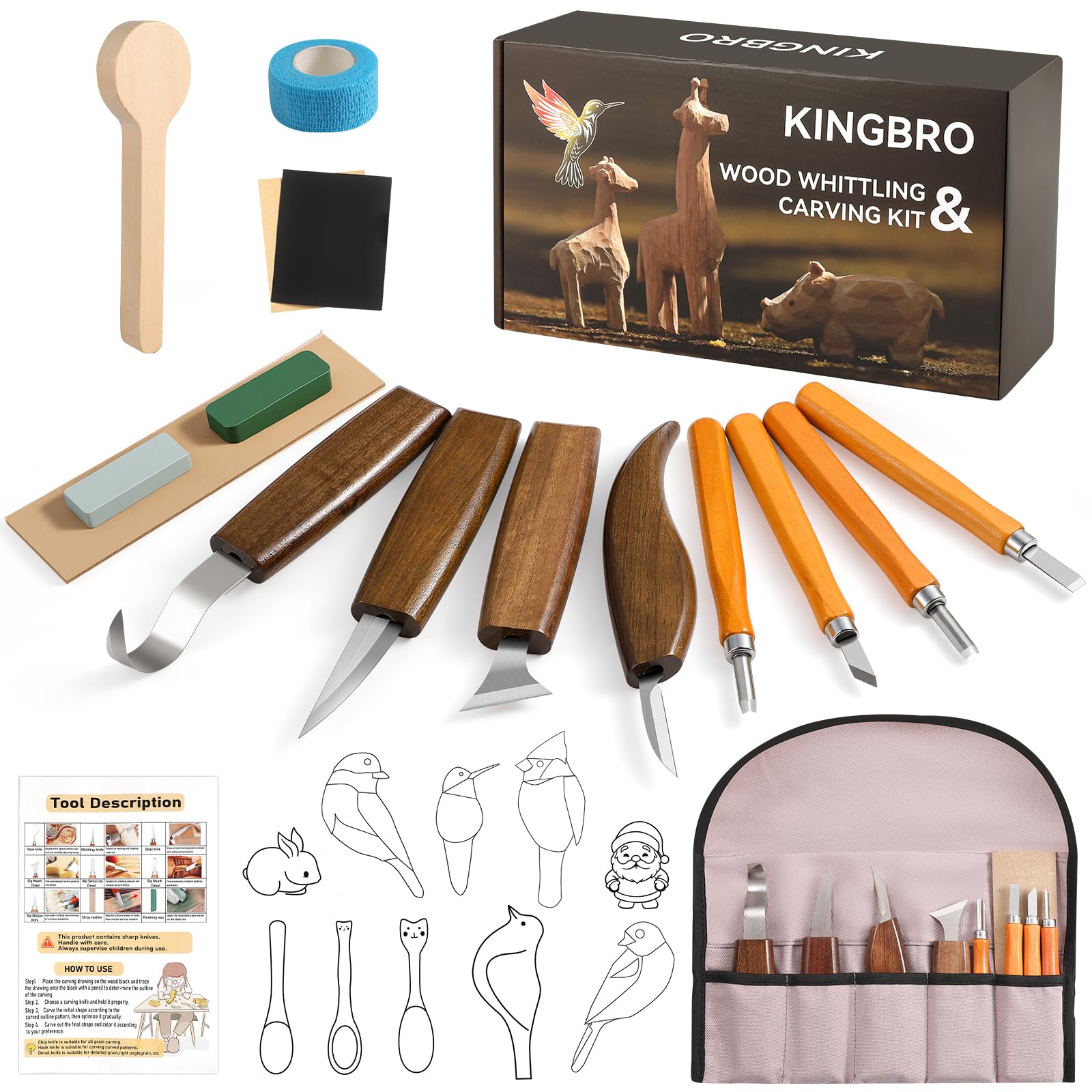 - All the knives you need to start wood carvings! This set includes 12 uniquely tipped knives and a sharpener. Comes with a carbon fibre print carrying case.