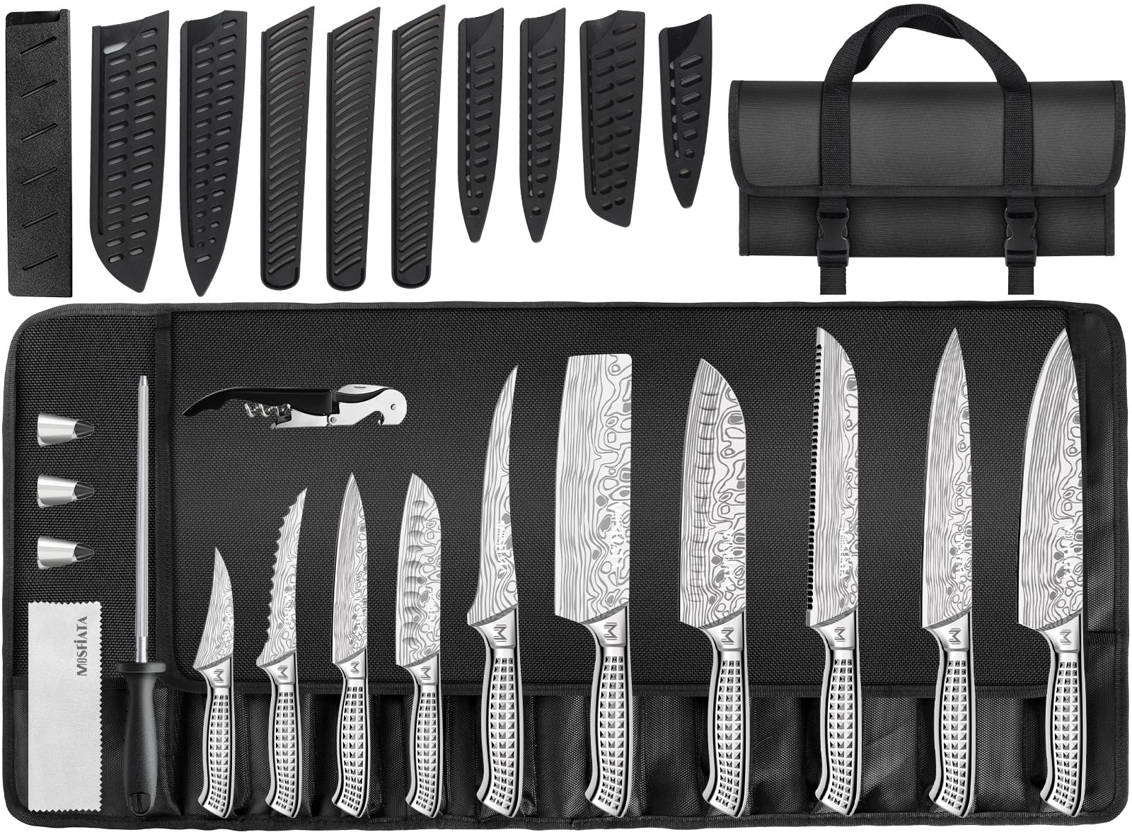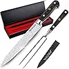 - 【Perfect as Gift】: The carving knife and fork set comes in a high-quality black gift box, making it the perfect gift for a mother, father, grandparent or friend. Plus, with the knife sheath, young children and other family members will be protected from injury. Note: it is not Damascus steel.