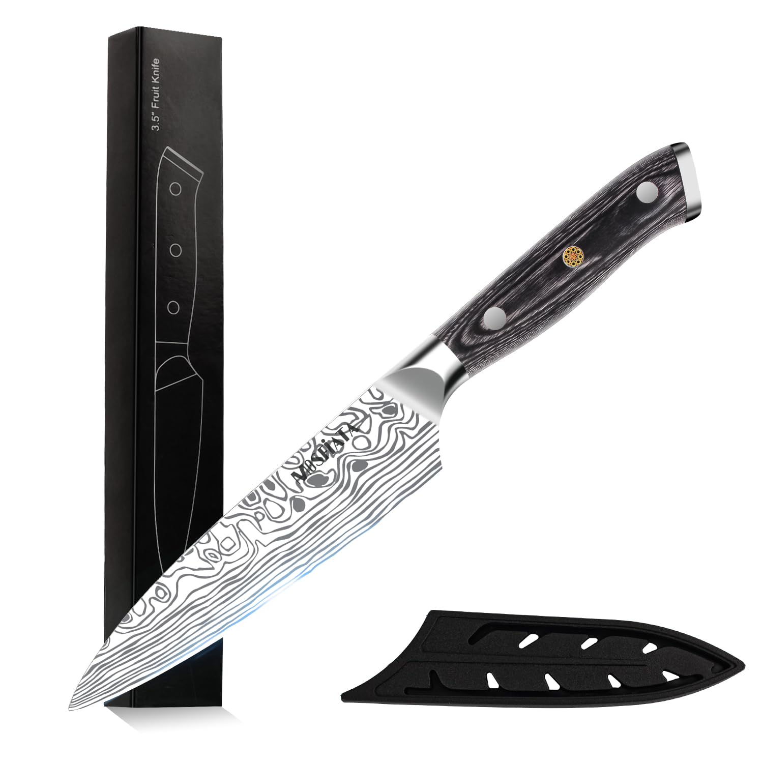 - 【Sturdy Micarta Handle】: The solid Micarta handle minimizes wrist tension while providing a secure, comfortable grip no matter your hand size or where you grip. Even after prolonged use, your palm and wrist will not fatigue. Ideal for both people who cook frequently and those who just like preparing snacks. The durability and reliability of the knife and fork are secured by the rivet design that attaches the handle firmly onto the blade.