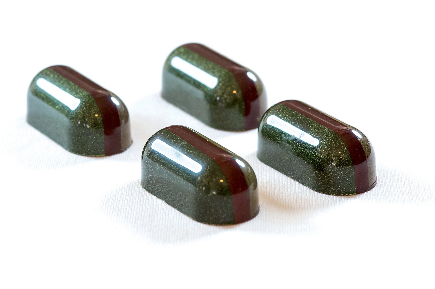 - 1 mold having nine pointed-oval-with-wavy-ridge cavities, each cavity measuring 3.39 inch by 1.61 inch by 0.87 inch high (86 millimeters by 41 millimeters by 22 millimeters high), with