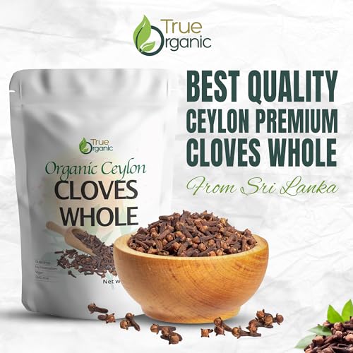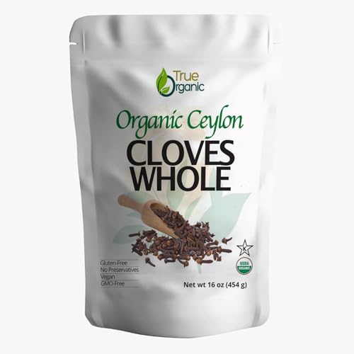 True Organic Ceylon Cloves Whole, 1 lb, Premium Grade, USDA Organic & Kosher Certified, Non-GMO, Fresh Organic Cloves Bulk, Ceylon Premium Quality (16 Ounces)