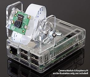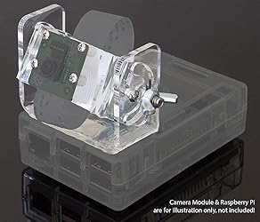 - The Tilt-Adjustable Raspberry Pi Camera Mount attaches directly to the RaspberryPi case for an easy and clean solution to tilt your PiCam up or down, then hand-tighten with the wing nuts. Designed for the hole pattern of the RPi Camera Module v1 and v2 as well as the 'ArduCam 16MP Autofocus' and the Raspberry Pi AI Camera. Does not obstruct any of the port slots in the Raspberry Pi case. Made out of clear acrylic. Dimensions: Mounting surface: 1" / 25.4mm x 2.35" / 60mm Height: 1.75" / 45mm Width with camera module mounted and tilted horizontally: 1.6" / 40mmWhat's included: See picture of disassembled mount. Includes the two acrylic parts, all bolts, nuts, spacers, screws, double stick tape and assembly instructions. Does NOT include camera module, RaspberryPi circuit board nor RaspberryPi enclosure. Tools required for assembly (not included): - Small Phillips screwdriver (PH0) - Pliers to hold the nut while tightening