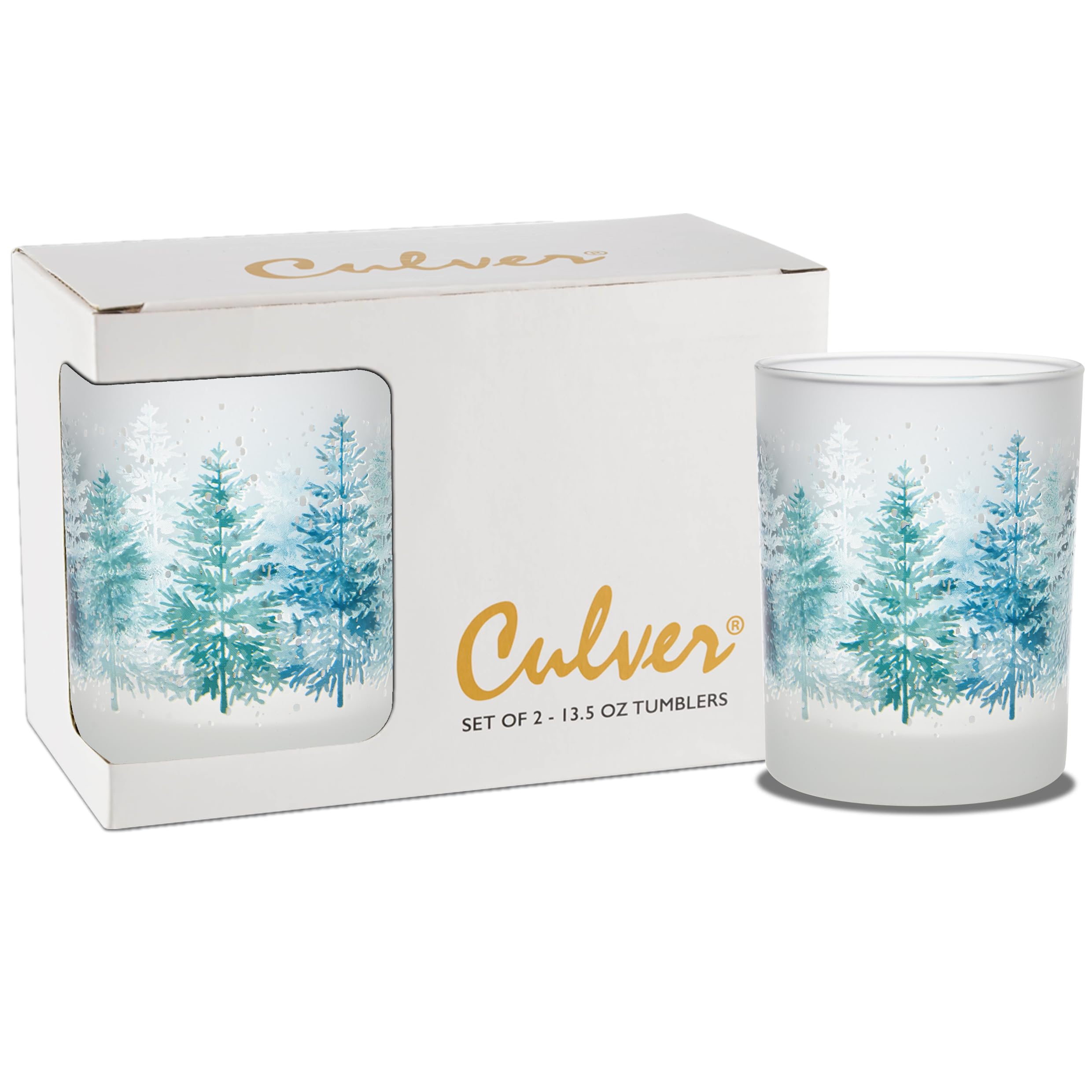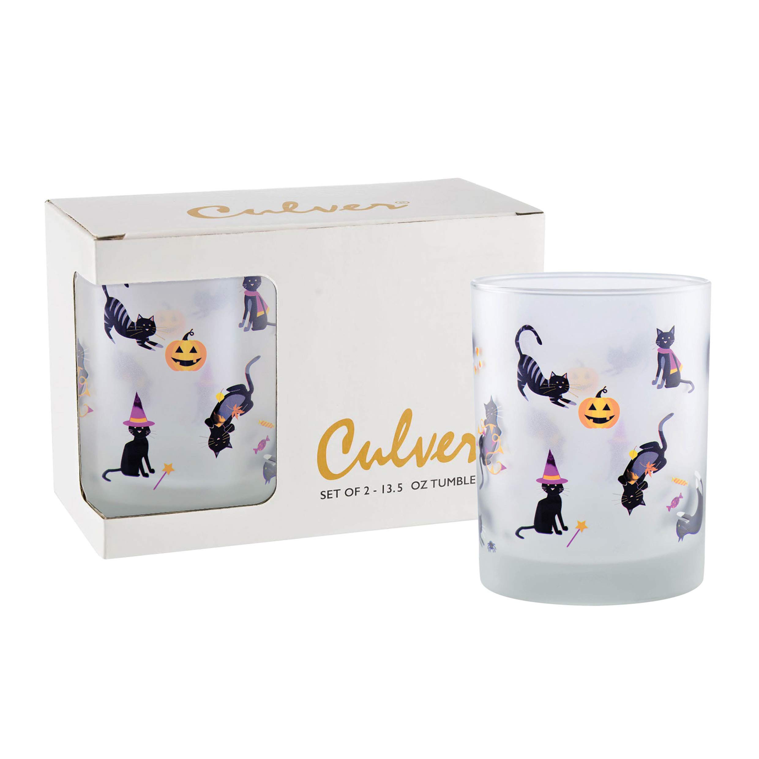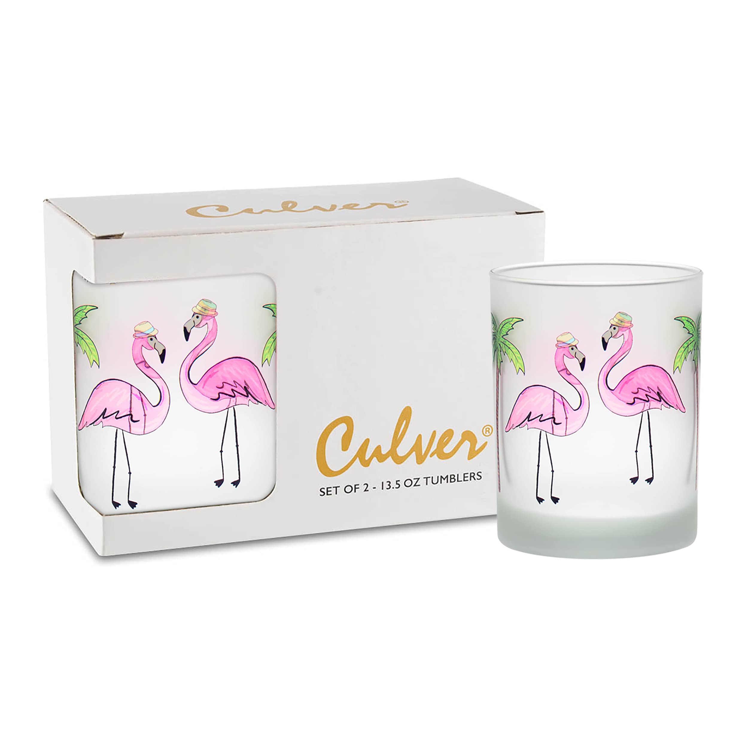 Culver Tropical Decorated Frosted Double Old Fashioned Tumbler Glasses, 13.5-Ounce, Gift Boxed Set of 2 (Pop Art Pineapples)