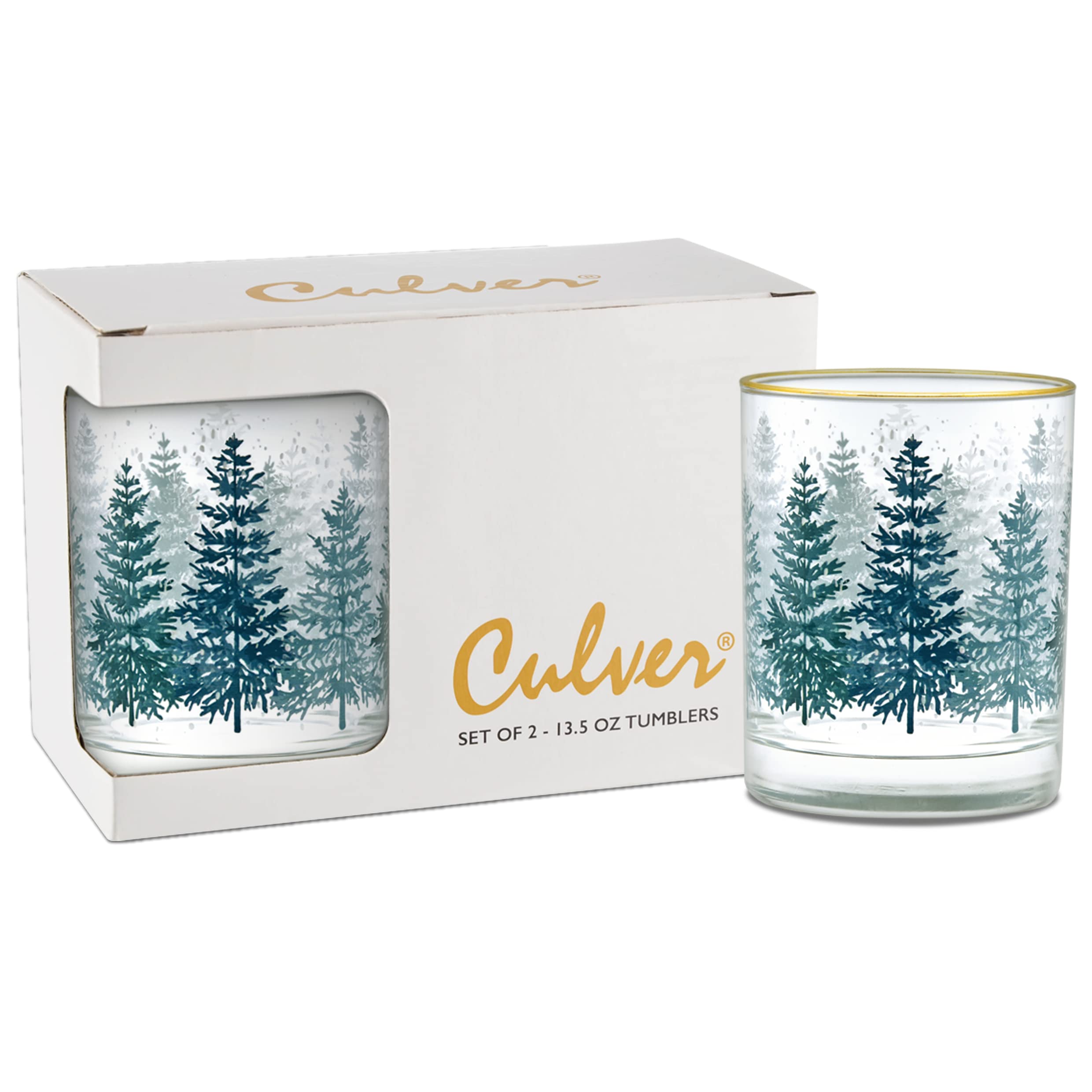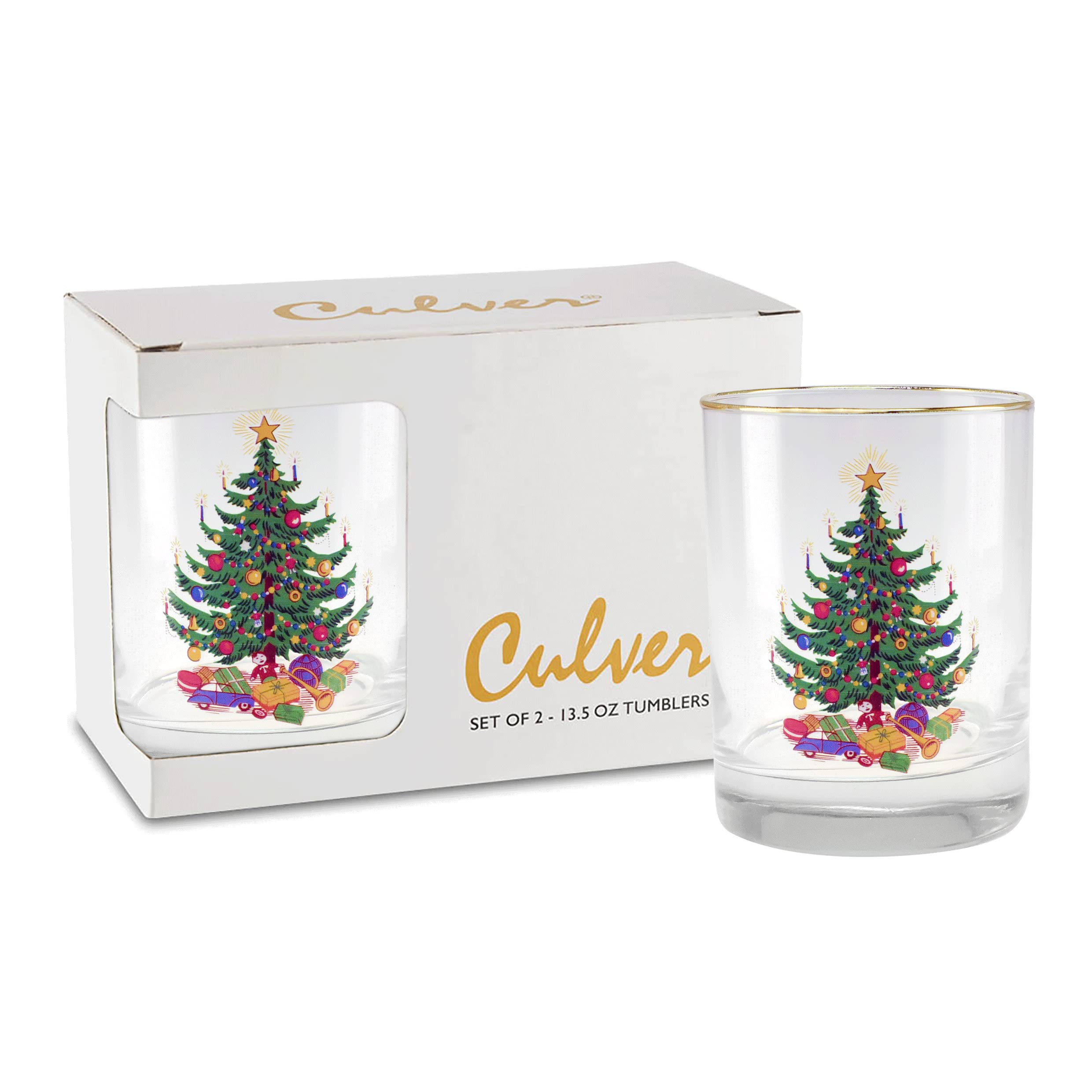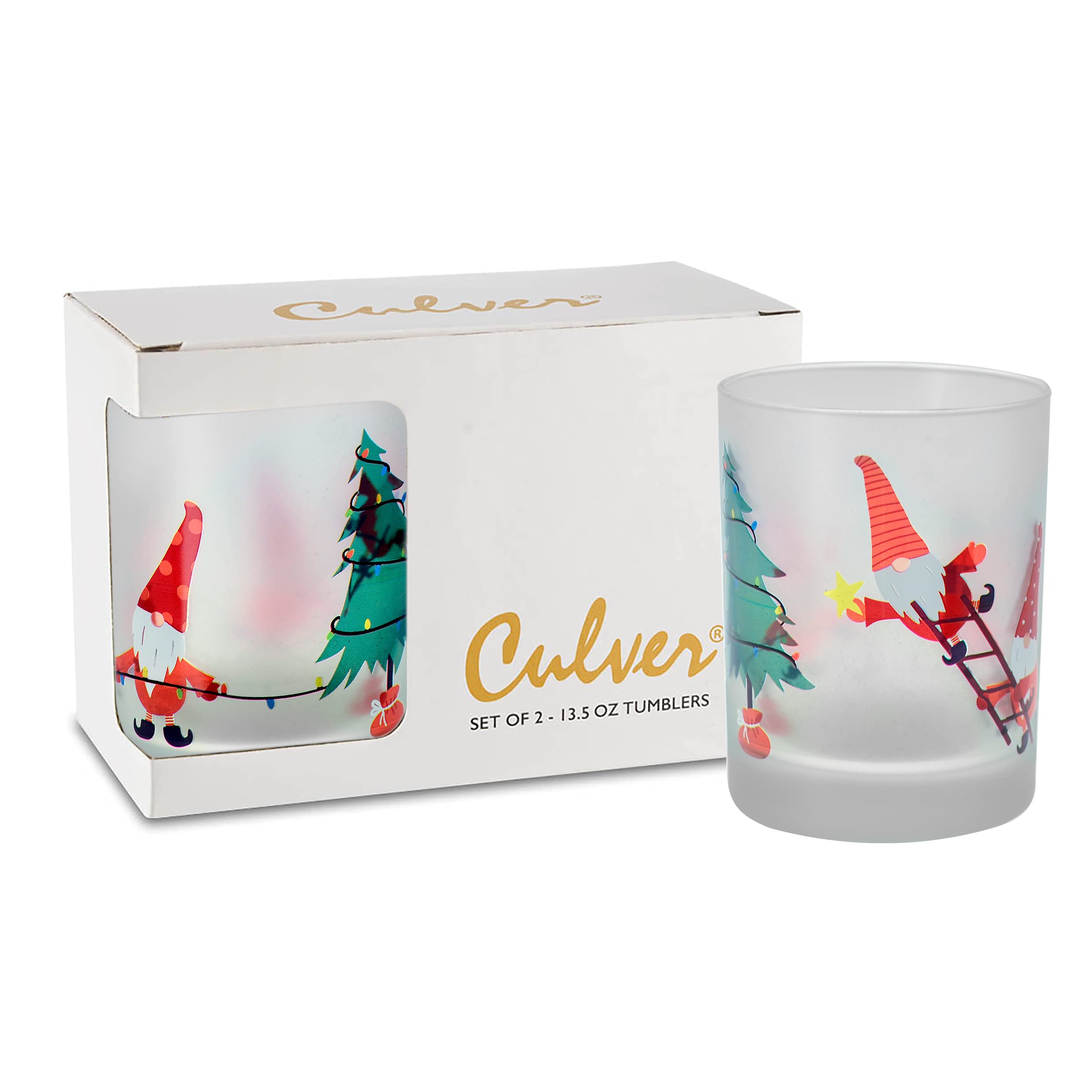 Culver Tropical Decorated Frosted Double Old Fashioned Tumbler Glasses, 13.5-Ounce, Gift Boxed Set of 2 (Pop Art Pineapples)