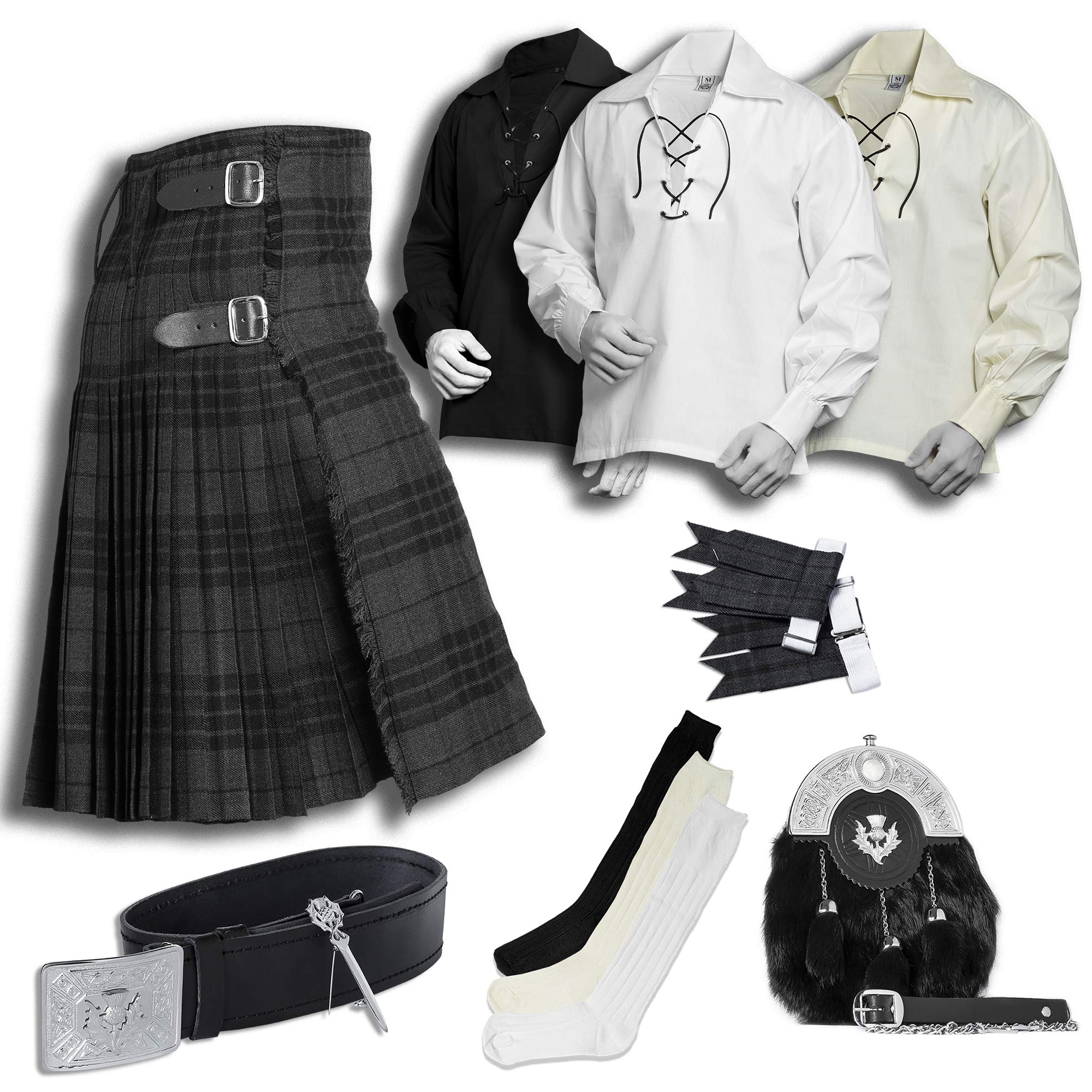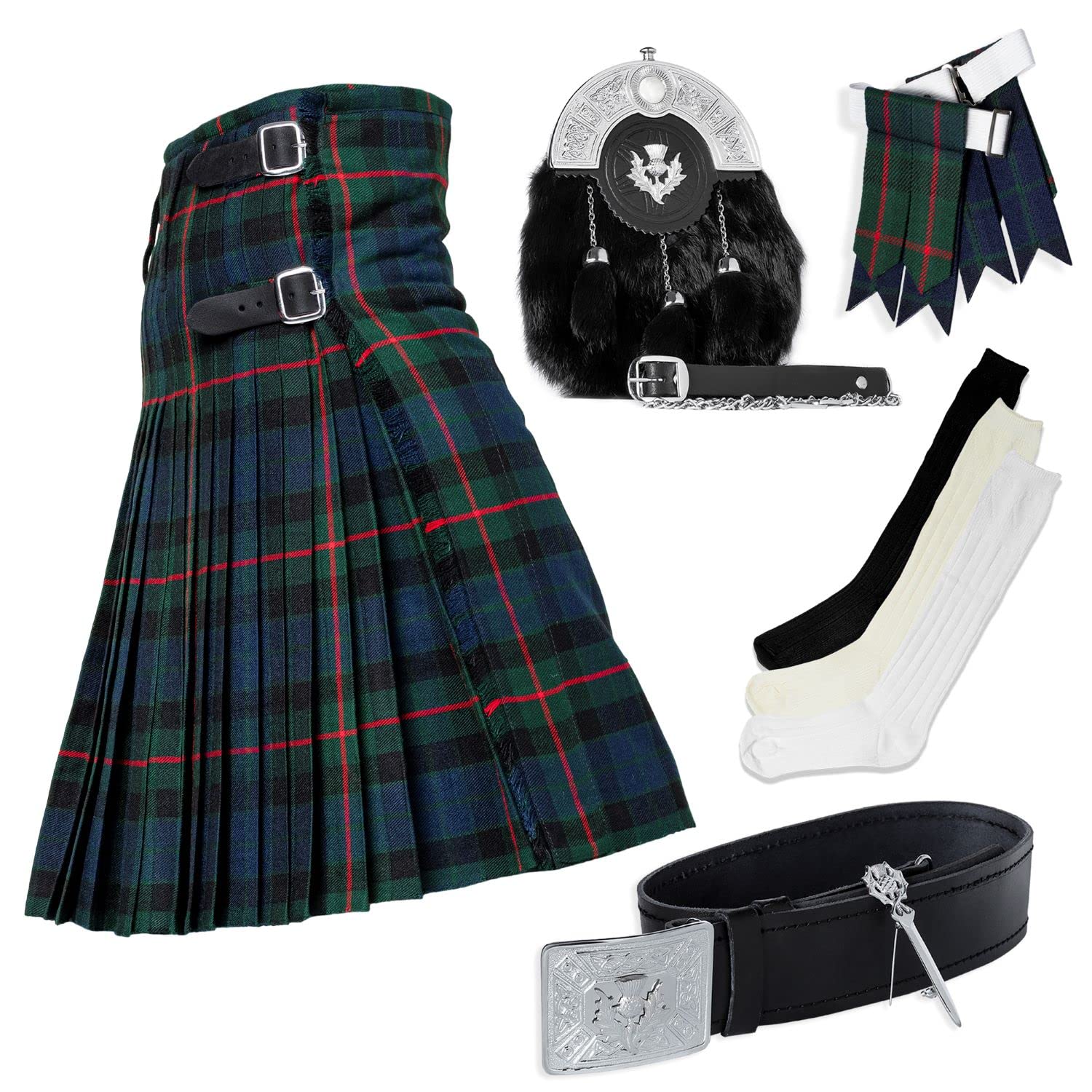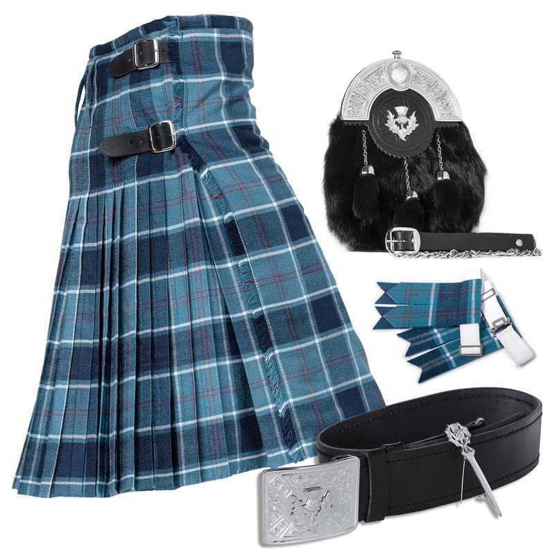 Tartan Kilt Set - 08 Pieces Kilt Accessories for Men, Scottish Outfit (Black Watch Customize)