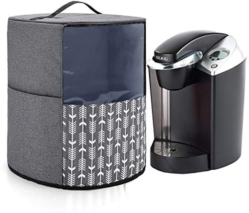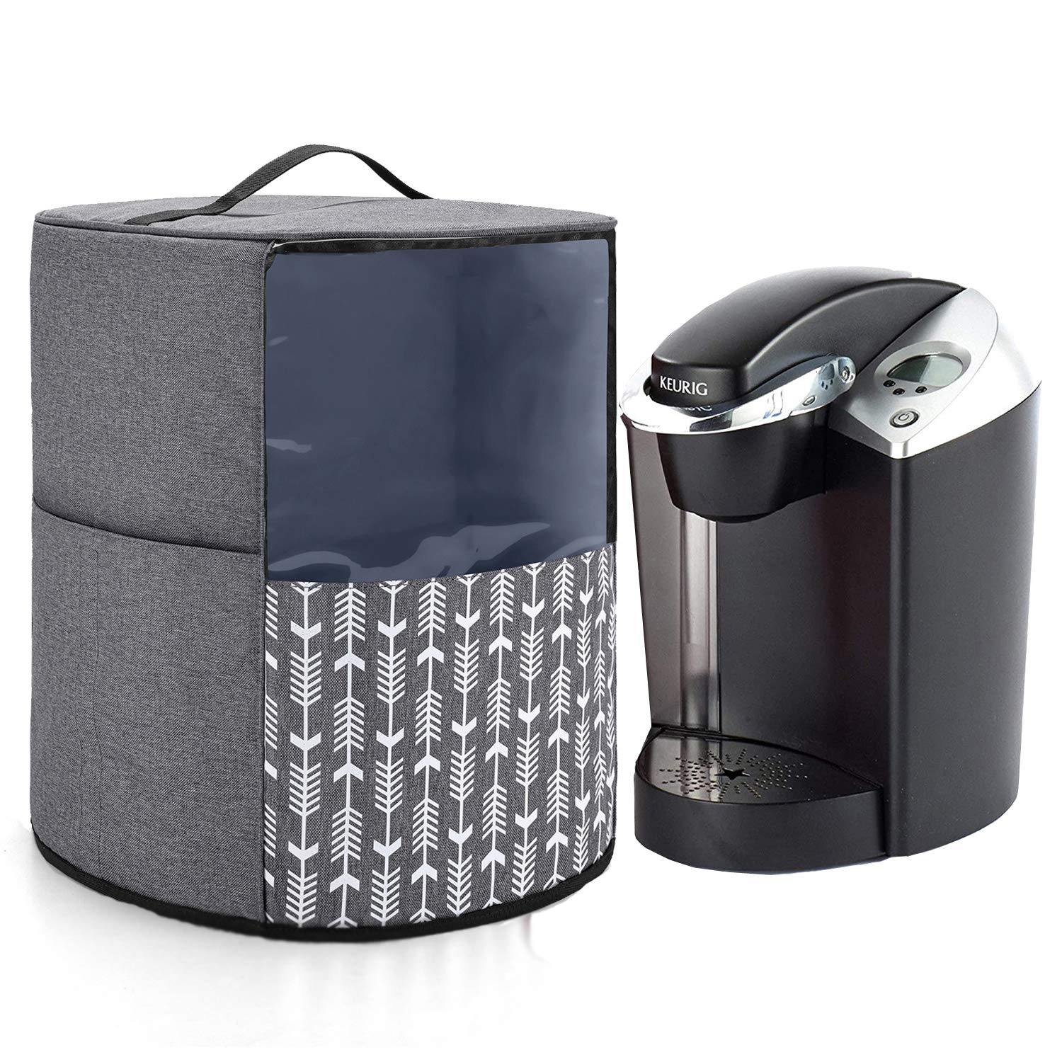 Yarwo Coffee Maker Dust Cover Compatible with Keurig K-Classic and K-Select, Visible Coffee Machine Cover with Pockets and Top Handle, Gray with Arrow