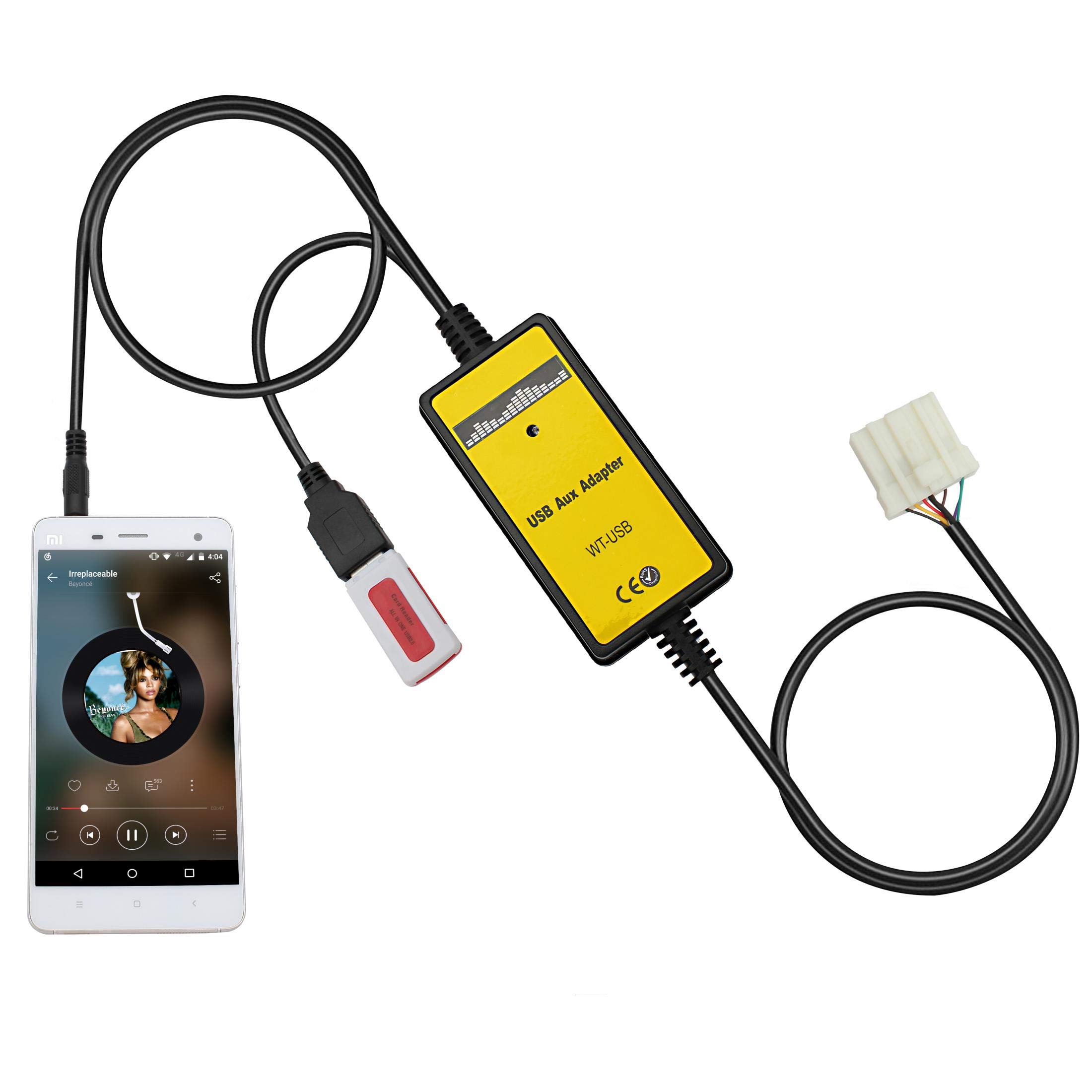 Car Audio AUX Input & USB Charging Interface 3.5mm Auxiliary Adapter (2nd Gen) for Toyota Camry 2006-2011, RAV4 2003-2011, Avensis 2003-2011, Corolla 2005-2011, Tacoma 2004-2008