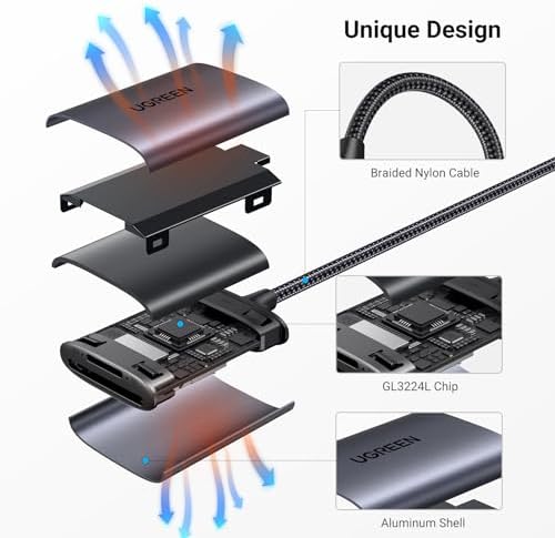 - 5Gbps High-speed: UGREEN SD Card Reader USB C supports data transfer up to 5Gbps and memory card capacity up to 2TB, 10X faster than USB 2.0 (480Mbps), which allows you to transfer an HD movie or files in seconds