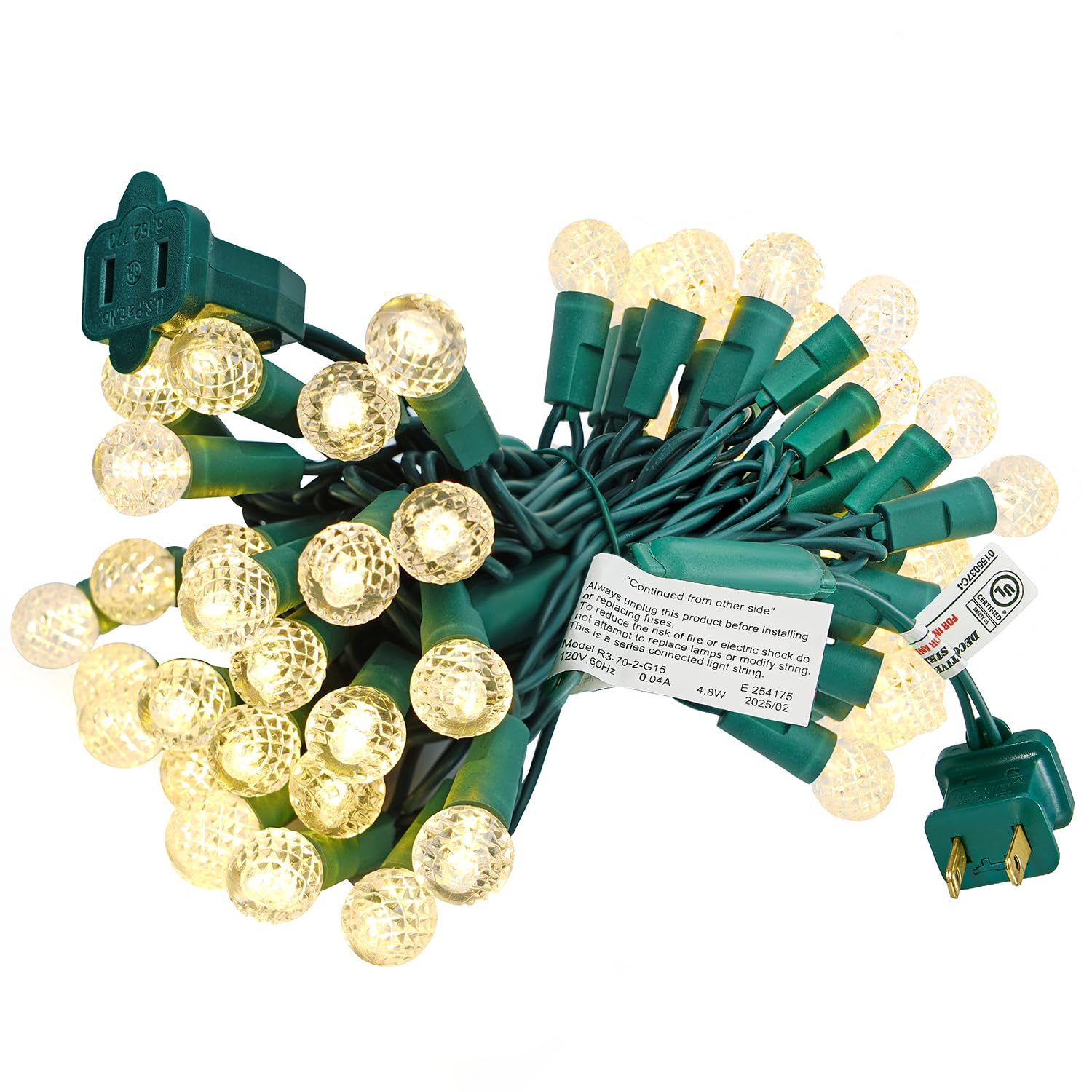 - Christmas Lights with Sealed Bulbs: The non removable bulb & base structure is sealed to prevent moisture, eliminate corrosion, and extend the lifespan of the light. The Christmas light string complies with North American safety standards. Combining the traditional shape of Christmas light bulbs G15 pearl bulbs with LED technology, an instant classic! Used for Christmas, Halloween, Parties, Weddings and other Celebrations.