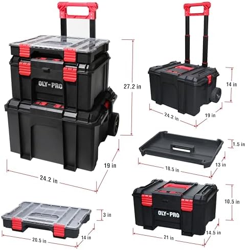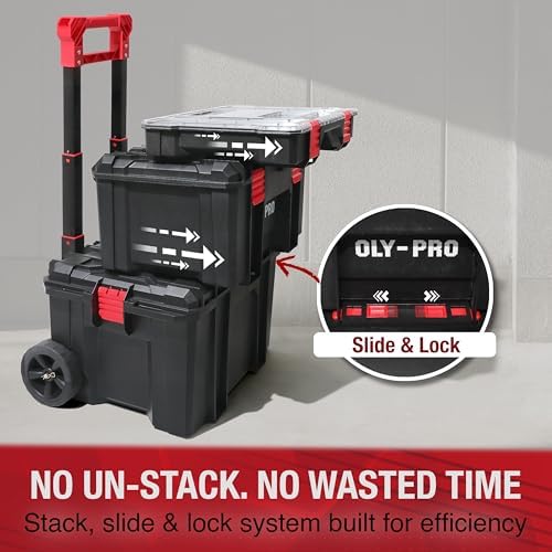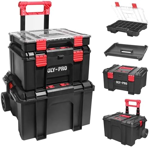 Modular Tool Box Storage System, Rolling Stackable Toolbox with Wheels, Heavy-Duty Plastic Organizer with Drawers for Garage or Truck, Black