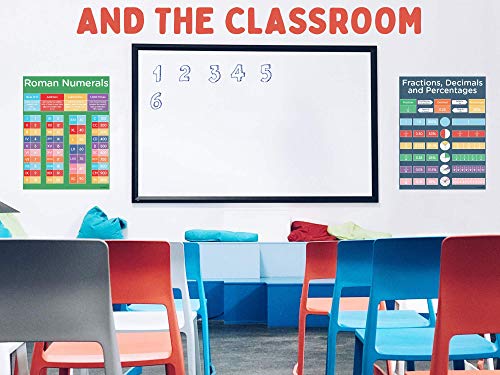 12 Math Posters for Elementary School - Large Educational Math Classroom Decorations for Teachers. Math Charts Include Place Value and Multiplication Chart for 5th and 4th Grade Math Lessons