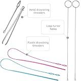 - 6 Pieces sewing loop kit, include loop turner hook flexible drawstring threader metal tweezers long loop turner tool with latch for fabric belts strips diy knitting accessories Features: Wide applications: Or long loop turner kit is suitable for many kinds of crafts, such as button loops, closures, drawstring belts, making strap and so on, improve your whole work process, and 3 different styles for you can use in different cloth. As practical gift: Everyone will like cute but practical items, you can send the loop turner hooks to your friends, parents, grandparents, relatives, neighbors and so on. Specifications: Loop turner: stainless steel Plastic drawstring threader: plastic Metal drawstring threader: metal Color: as the picture shown Size: Loop turner: approx. 26.5 cm/ 10.4 inches long Plastic drawstring threader: approx. 58 cm/ 23 inches long Metal drawstring threader: approx. 8 cm/ 3.2 inches Metal tweezers: approx. 6.35 cm/ 2.5 inches Package includes: 2 x Sewing loop turner hooks 2 x Plastic drawstring threaders 1 x Metal drawstring threader 1 x Metal tweezers Warm notice: Please keep away from under 3 years old. Please allow a little error on the size due to manual measurement.