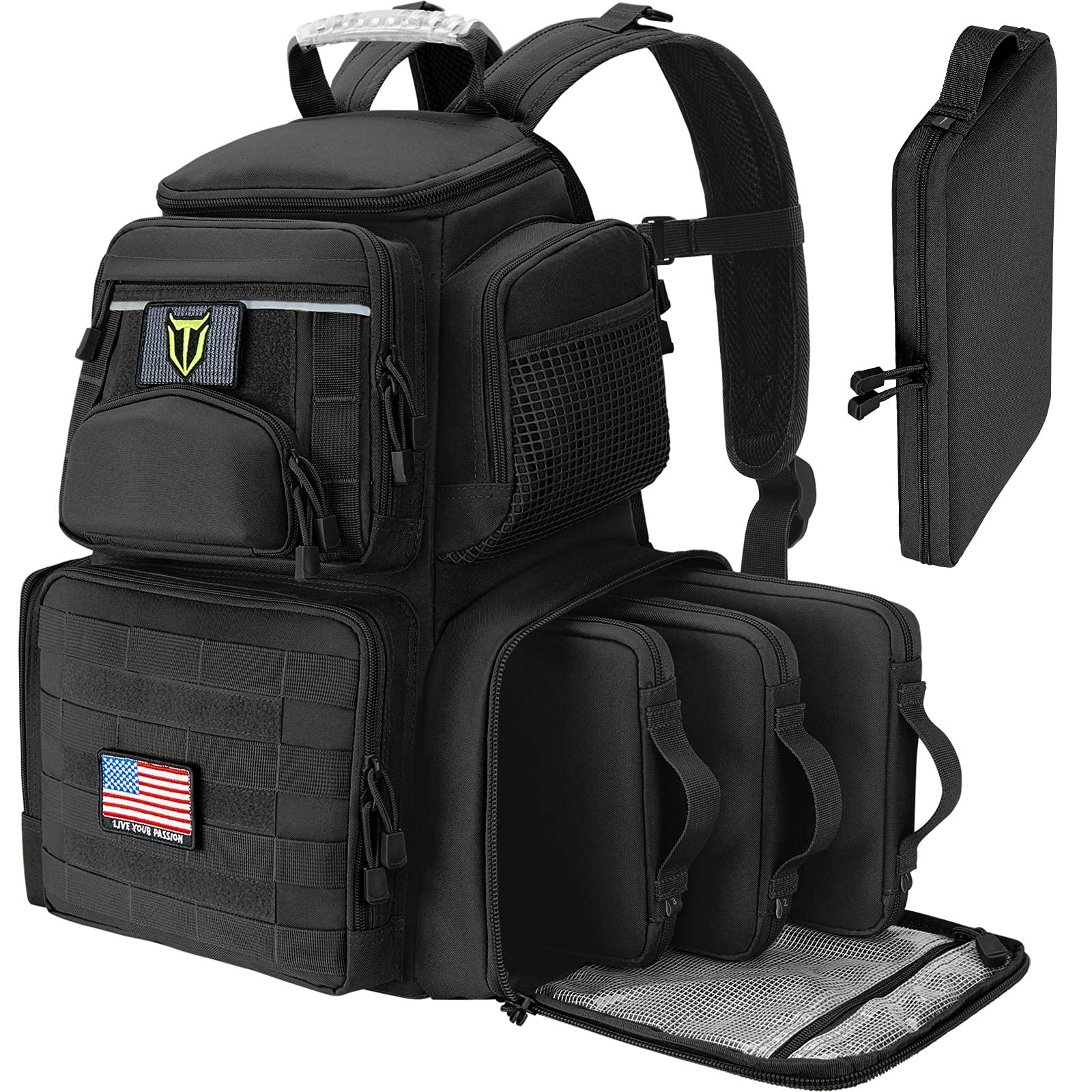 - 【Fácil de usar】La mochila de la gama TideWe está diseñada con una funda de gafas moldeada dura en la parte superior, que ofrece suficiente protección para tus gafas de seguridad para disparar. El asa cómoda, la cremallera con cierre y el parche de la bandera son ideales para los entusiastas de las armas.