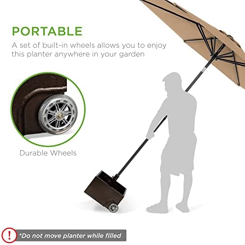 Best Choice Products 150lb Capacity Portable Steel Umbrella Base Stand for Outdoor, Patio, Garden, Market w/Fillable Planter, Drainage, 2 Adjustment Knobs, Handle, Wheels