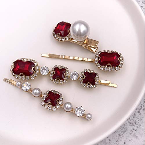 - STUNNING SHADES OF RUBY RED: Three bobby pins are embellished with red crystals. These red stones are surrounded with small rhinestones crystals and imitation pearls to give extra sparkles. They can be worn alone or stacked. Also, there is a mini hair alligator clip decorated with a large red crystal and pearl. It is perfect for keeping fringe hair at the side.