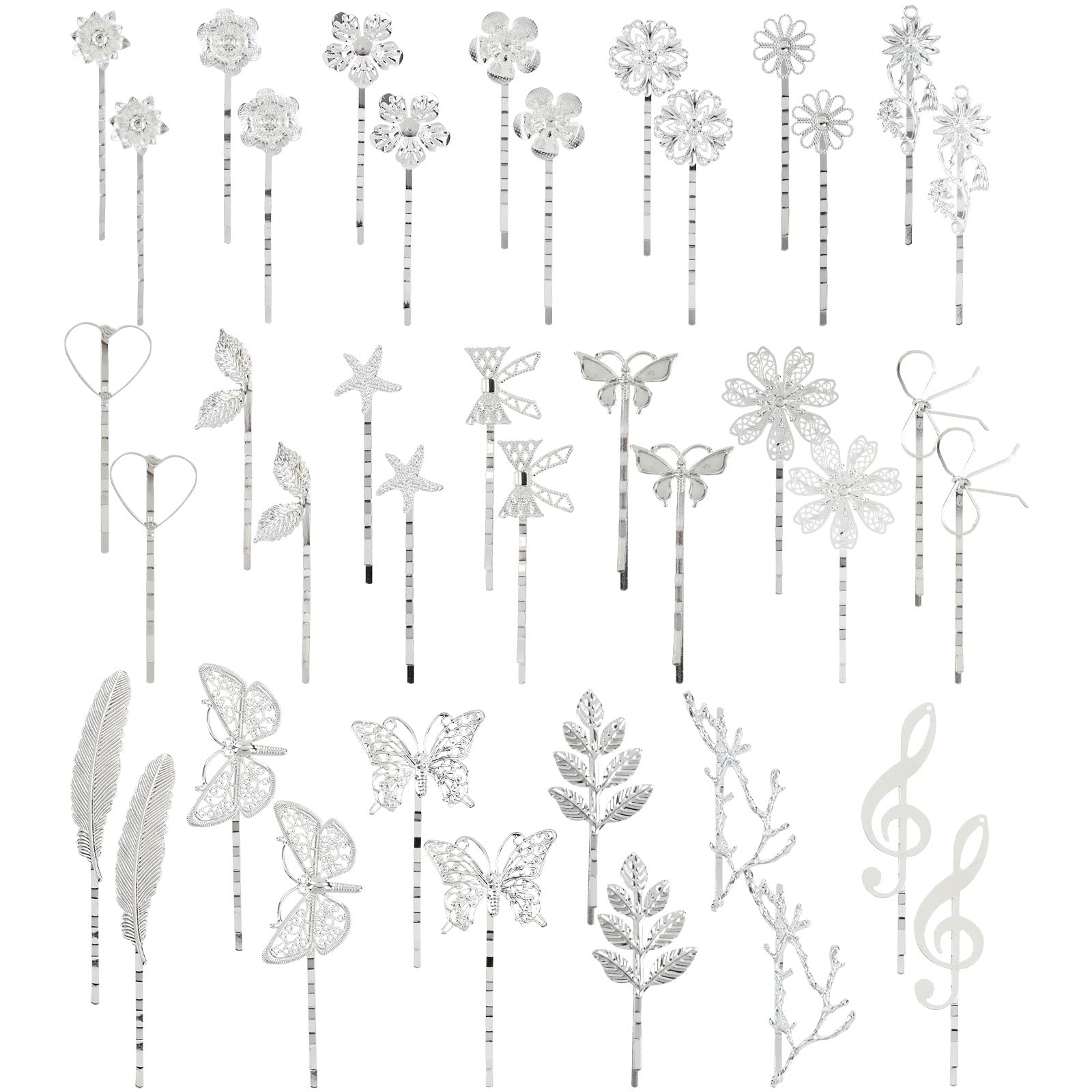 - MEDIUM GOLD TONE PINS: The total length of each pin is about 2.6in/ 6.5cm, while the mini alligator clip is of 1.4in/ 3.5cm long. The hairpins are great for keeping hair out of the face and as decoration to spice up your look.