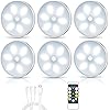 Luces LED para Armario con Sensor de Movimiento Inalámbrico, Luz de Paso con Control Remoto, Luces Puck Recargables por USB, Iluminación Interior para Bajo Muebles con Adhesivo Magnético (6 Unidades)