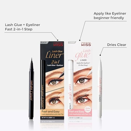 KISS Lash Glueliner, Eyeliner Lash Glue, 2-in-1 Felt-Tip Eyeliner and Lash Adhesive, Includes 1 Glue Liner, Long Lasting Wear, Can Be Used with Strip Lashes and Lash Clusters