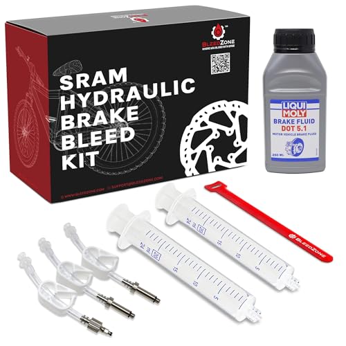 - RELIABLE BRAKE PERFORMANCE: Regular bleeding of your hydraulic bike brakes keeps them responsive and reliable, greatly enhancing your safety. Our SRAM brakes bleeding kit includes 250ml of SRAM DOT 5.1 brake fluid, reusable brake bleed syringes, and a secure silicone hose. Our bike hydraulic brake bleed kit ensure thorough and precise bleeding, keeping your hydraulic bike brakes at peak performance.